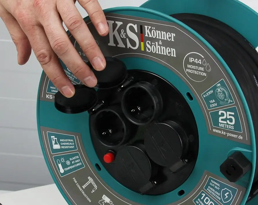 Подовжувачі ТМ «Könner & Söhnen» призначені для використання як в приміщеннях, так і зовні, на будівельних майданчиках, в сільському господарстві, а також в місцях з підвищеною вологістю. Кабелі мають високу стійкість до зносу, здатні витримувати важкі умови експлуатації, механічні впливи (удар, падіння, наїзд). Виготовлені з силового гнучкого кабелю з 100% мідними жилами у гумовій ізоляції, що забезпечує стійкість до атмосферних впливів, УФ-випромінювання, озону, захищені від хімічного впливу, консистентних мастил, змащувальних і мінеральних масел, не поширюють горіння, виготовлені без галогенів з низьким димо-/ газовиділенням.