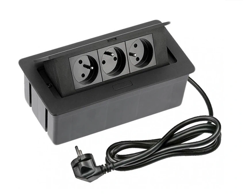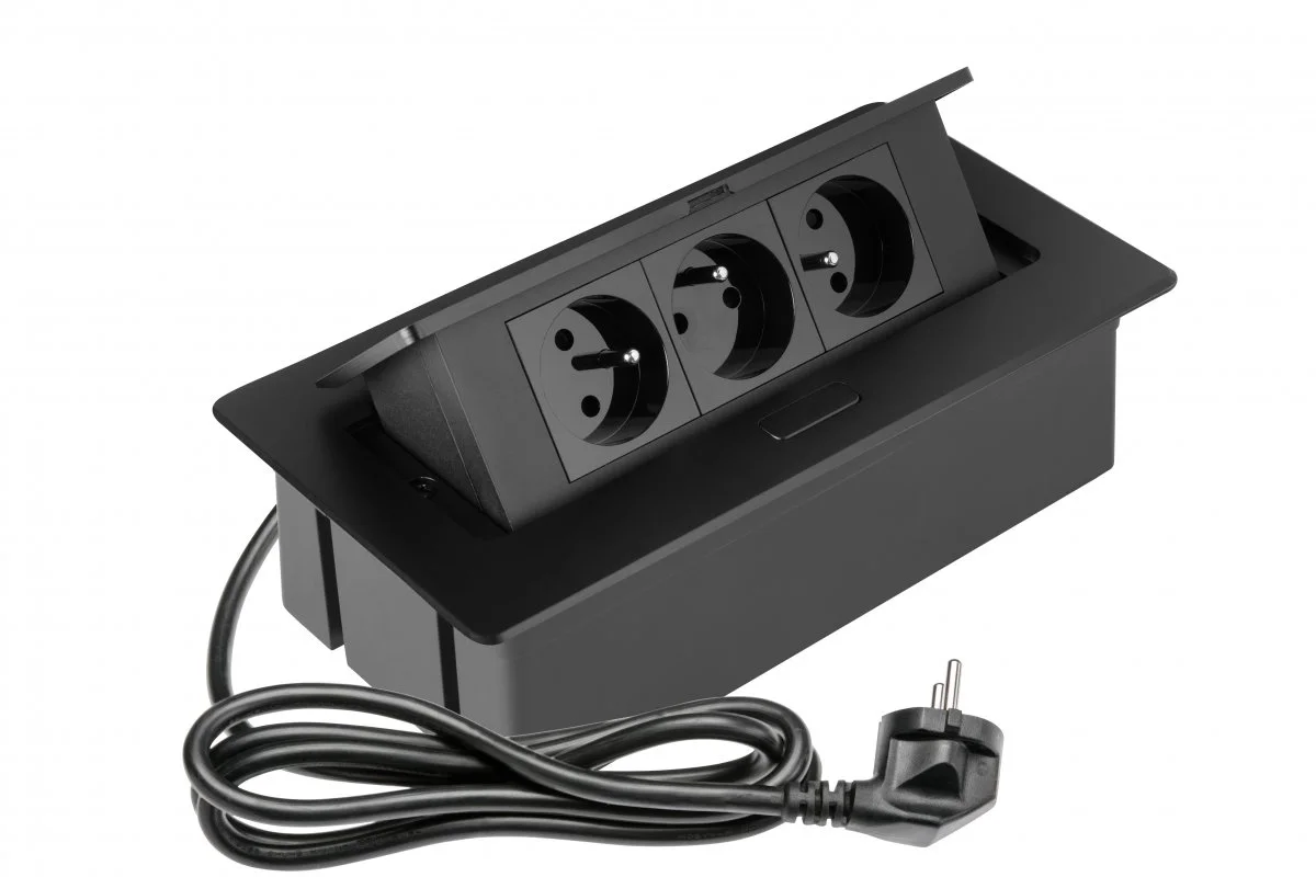 Удлинитель настольный GTV SOFT 3 розетки с заземлением 230V AC 16A.3600W 1,5м кабель с вилкой Черный