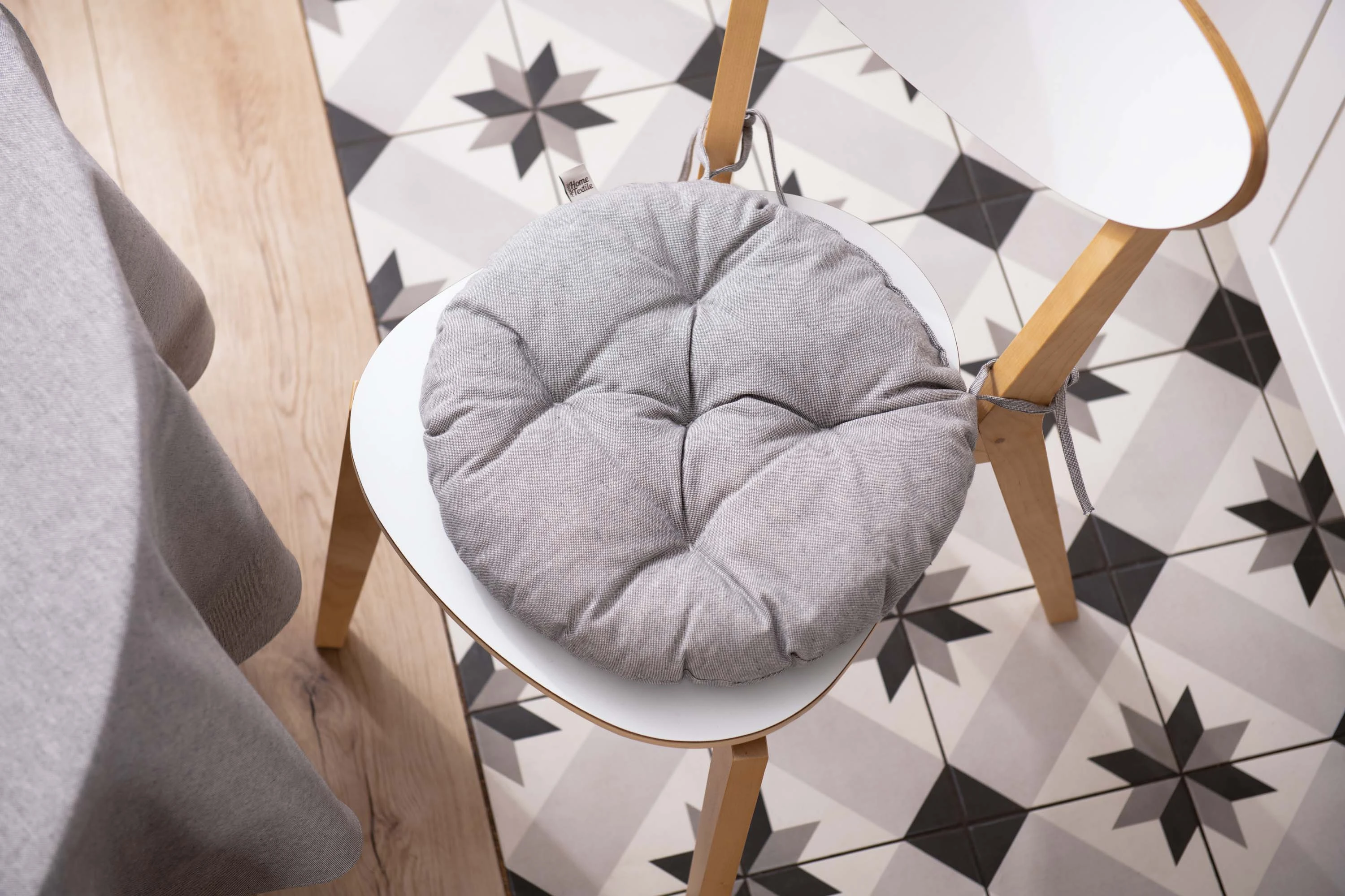 Подушка для стільця – простий і незамінний аксесуар для дому. Якісна кругла подушка для стільця ARDESTO Oliver сірого кольору підвищує комфорт повсякденного використання меблів, особливо, якщо ці предмети обстановки не мають м’яких сидінь. Чохол подушки виготовлено зі 100 % бавовни. Завдяки наповнювачу з холофайбера (50 %) та поліпропілену (50 %) подушка добре тримає форму.