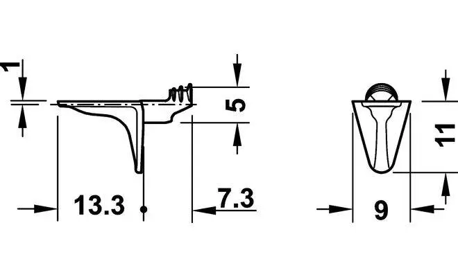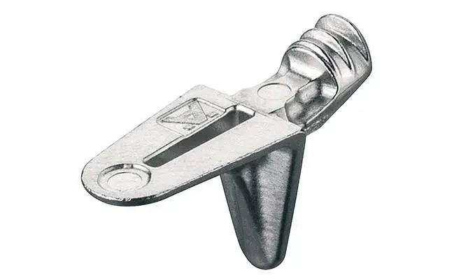 Полицетримач для дерев'яних полиць для кріплення в отворі діаметром 5 мм. Витримує навантаження до 9,4 кг.