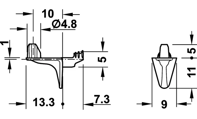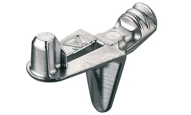 Полицетримач для дерев'яних полиць для кріплення в отворі діаметром 5 мм. Витримує навантаження до 15,6 кг.