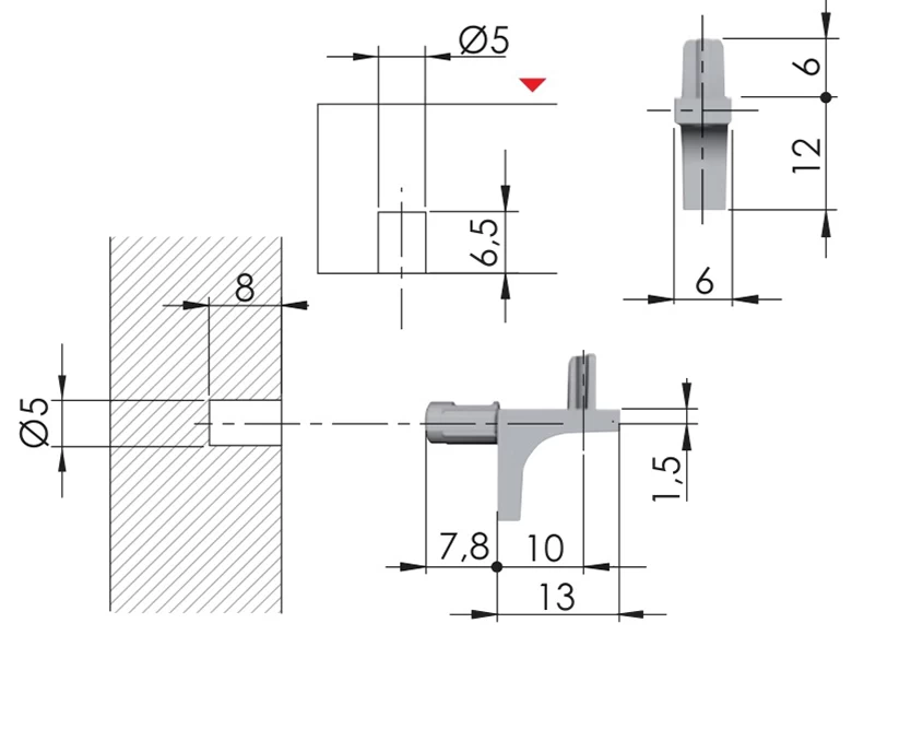 Дополнительный вертикальный штифт (5 мм) - надежно удерживает полку на месте.