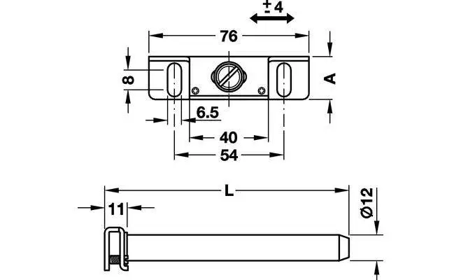 Полицетримач з кріпильною планкою і боковим регулюванням, матеріал: сталь, оцинкований, прихований, довжина 100 мм, для пригвинчування до опорного елементу та врізання в полицю, є можливість регулювання нахилу і висоти.