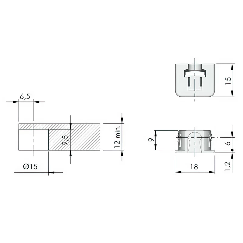 - Совместимость: Предназначен для полок из ДСП толщиной от 14 мм, что делает его универсальным выбором для большинства мебельных конструкций.