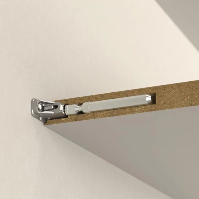 Скрытый полкодержатель TRIADE от Italiana Ferramenta - это современное решение для создания элегантных и функциональных полок в вашем интерьере. Эта серия полкодержателей позволяет устанавливать полки из ДСП толщиной от 30 мм с возможностью регулировки в трех плоскостях. Скрытый механизм позволяет создать стильную и аккуратную мебель, которая выглядит минималистично, без видимых креплений.