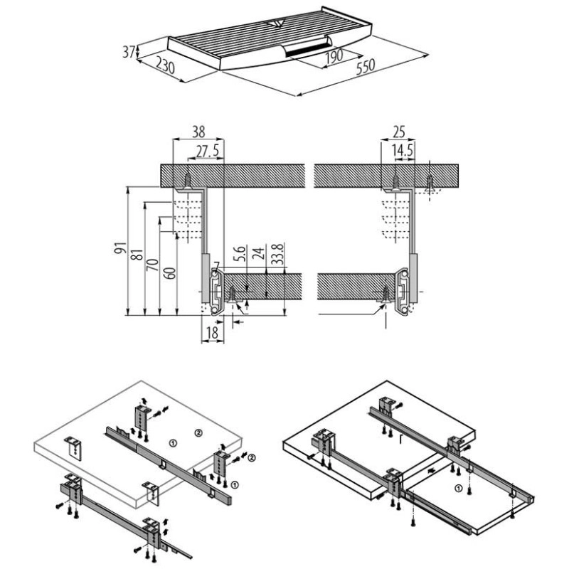 - Надежная конструкция и плавное выдвижение благодаря шариковым направляющим