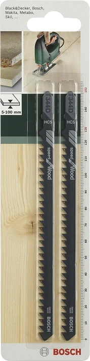 Пиляльное полотно Bosch T 344 D загальною довжиною 152 мм, з робочою частиною — 128 мм, з кроком зубців 4 мм, 6 TPI. Із HSC сталі з високим вмістом вуглецю. Виконує швидке, грубе, прямолінійне різання товстої будівельної деревини товщиною 5-100 мм. В упаковці 2 шт.