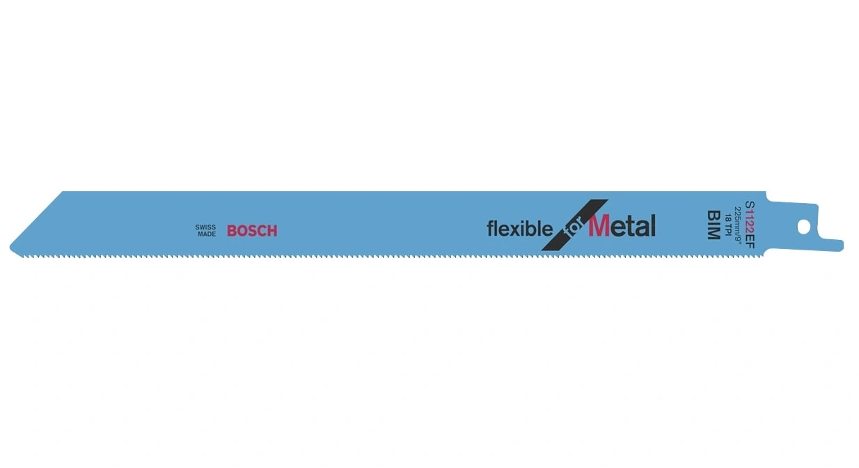 Полотно 225 мм завдовжки зі стандартного матеріалу товщиною 0,9 мм бездоганно підрізає врівень із поверхнею. Ріже сталеві вироби зі стінками стандартної товщини завдяки малому кроку зубців (1,4 мм). Підходить для всіх пил для зворотно-поступального пиляння з S-подібним хвостовиком.