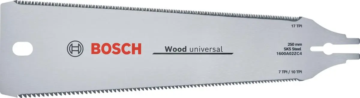 Полотно для шабельної пилки Bosch по дереву довжиною 250 мм забезпечує точне та швидке різання завдяки матеріалу SK5 та 17TPI (зубців на дюйм). Підходить для обробки дерева, гарантує високу продуктивність і тривалий термін служби.