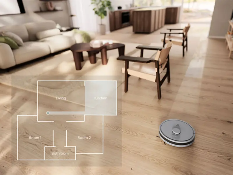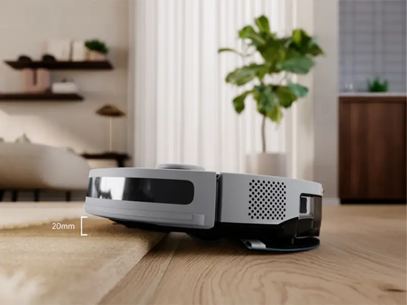 Технологія LiDAR дає змогу створити деталізовану карту вашого вибору та досягти оптимального вибору для кожної окремої кімнати. Ергономічні коліщатки пересуваються через 20-мм пороги1, а датчики обриву запобігають падінню2, завдяки чому ваш пілосос може ефективно прибрати в кожну куточку.