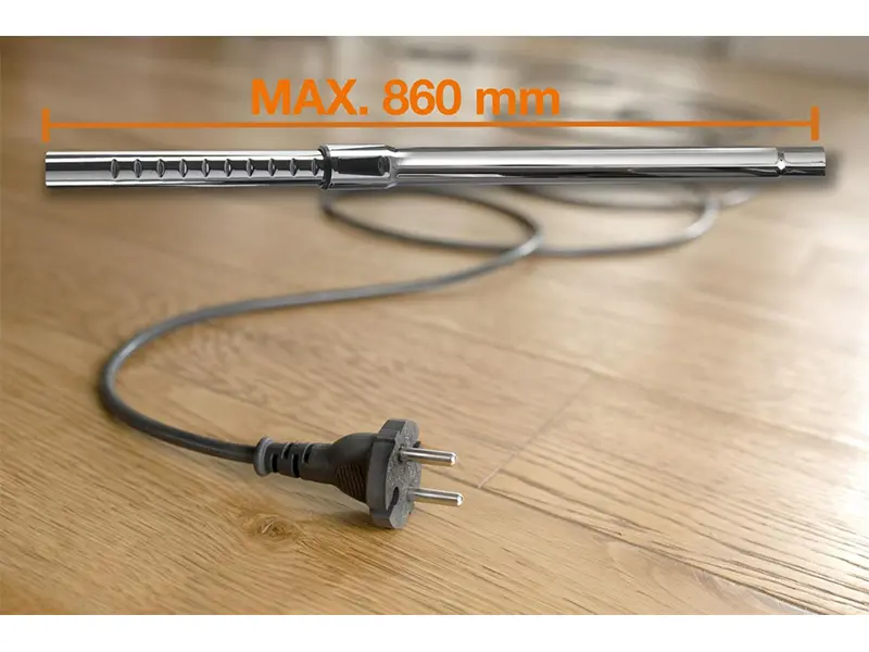 Завдяки ультрадовгому телескопічному всмоктувальному шлангу та шнуру довжиною в 6 м вам не доведеться підключати штекер знову й знову. Немає необхідності шукати ще один перемикач.