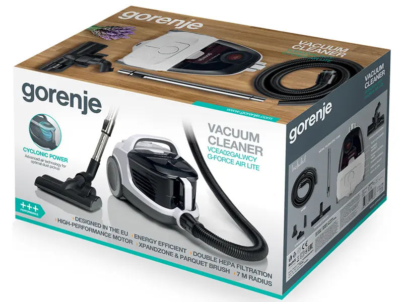 Автоматична смотка кабелю передбачена у стандартній комплектації пилососів Gorenje. За допомогою цієї технології кабель автоматично змотується до корпусу приладу.