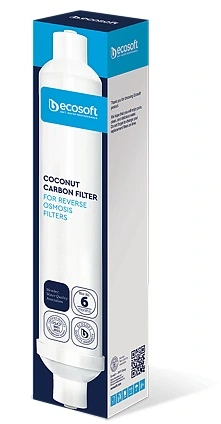 Вугільний постфільтр Ecosoft призначений для фінального очищення води. Встановлюється на фінальній стадії в домашніх фільтрах зворотного осмосу. Всередині високоякісне активоване вугілля зі шкарлупи кокосових горіхів, коригує смак та запах очищеної води, надає їй солодкий присмак. Кожний постфільтр проходить перевірку на герметичність. Підходить для фільтрів зворотного осмосу інших виробників.