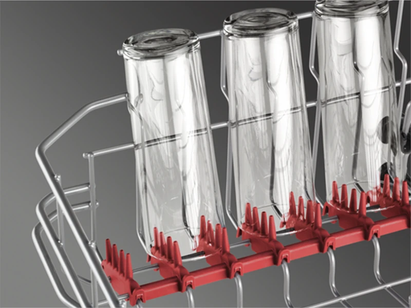 Бокалі – найделікатніші предмети у вашій посудомийній машині. Це означає, що вони потребують особливої уваги. Верхній кошик у посудомийній машині має гумові утримувачі SoftSpikes для підтримки та захисту скляних виробів.