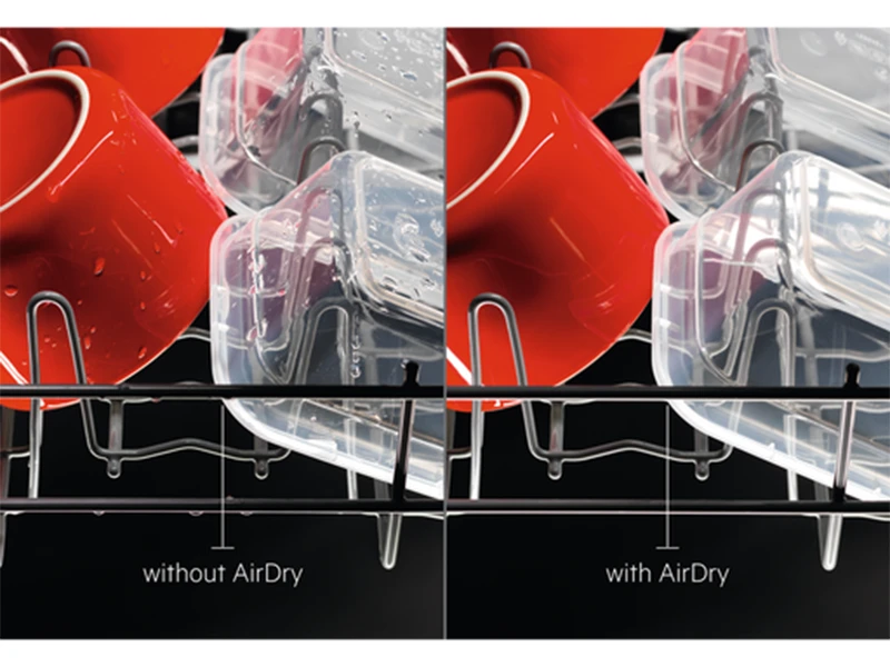 Нова технологія AirDry дозволяє максимально підвищити продуктивність сушіння при природному потоці повітря. Двері автоматично відчиняються на 10 см, коли цикл знаходиться на останньому етапі. Це зменшує витрати на енергію.
