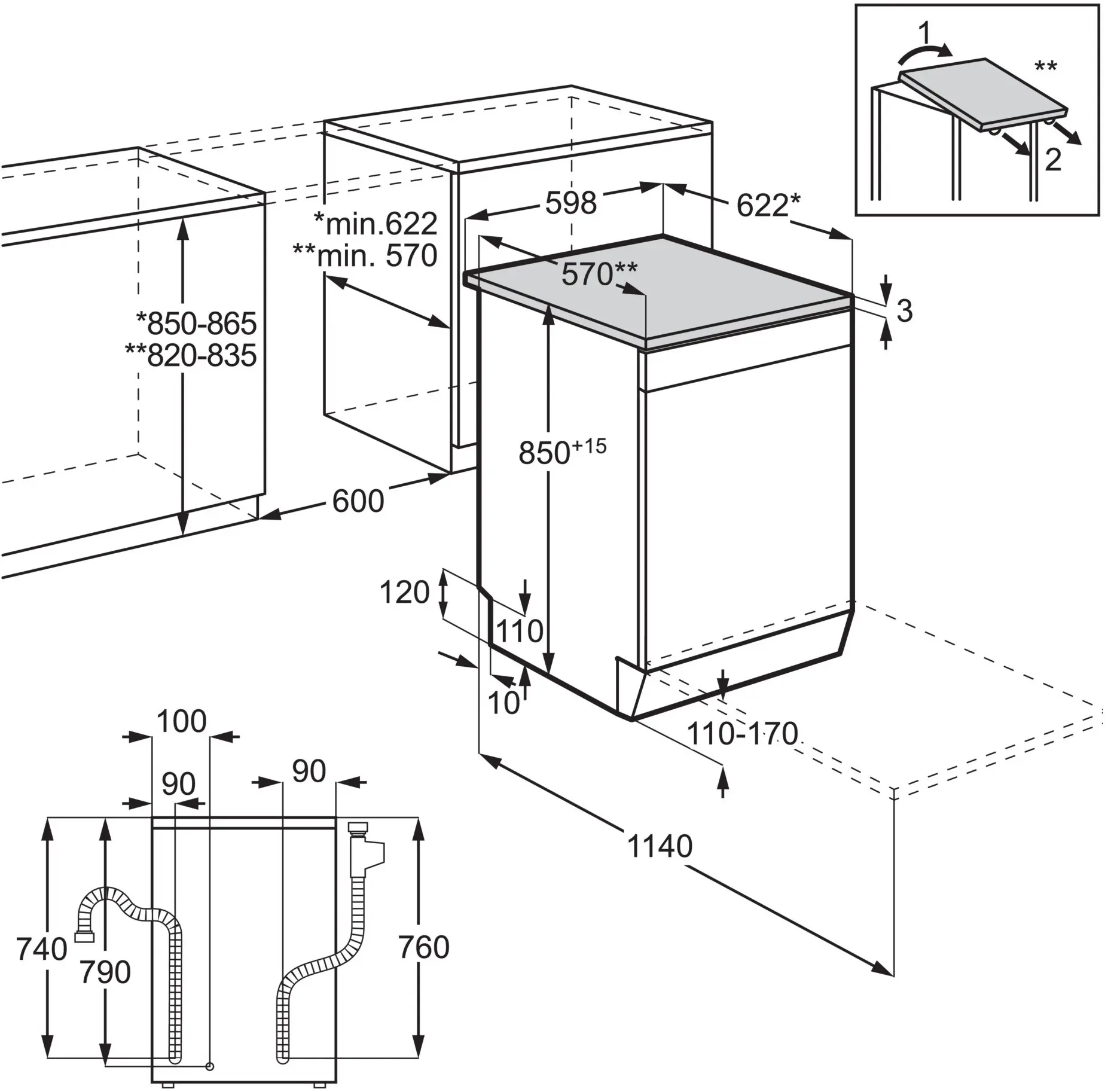 Благодаря инверторному мотору машина работает тихо и надежно, снижая потребление электроэнергии. Класс A+++ обеспечивает минимальные затраты ресурсов. Третий выдвижной лоток позволяет удобно размещать столовые приборы, освобождая место в нижней корзине.