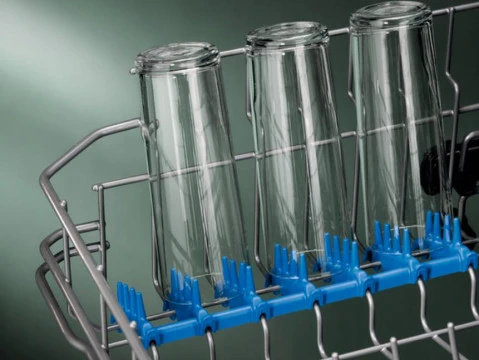 Щоб звести до мінімуму ризик пошкодити або розбити витончені келихи під час миття, гумові тримачі SoftSpike підтримують їх у вертикальному положенні.