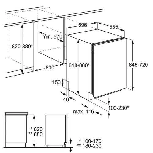 * Розміри ніші для вбудовування (ВxШxГ): 81.5-87.5 x 60 x 55 см