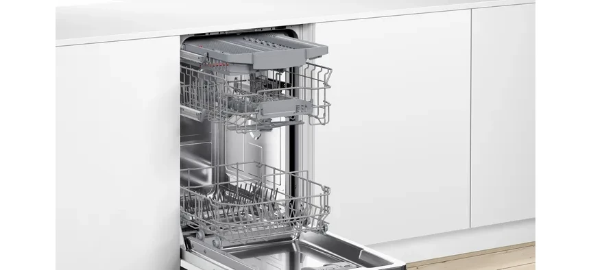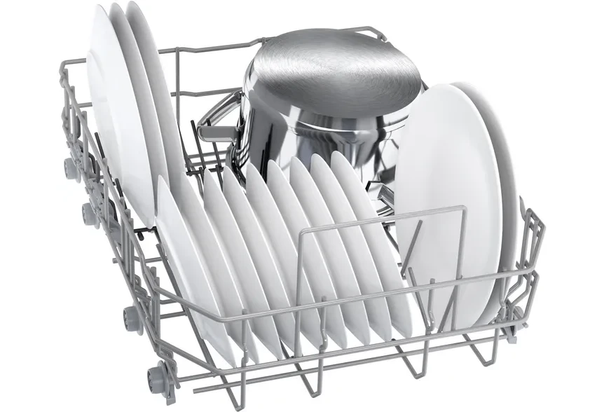 Завантажуючи посудомийну машину, іноді вам потрібно трохи більше місця зверху - наприклад, для посуду на ніжках або високого посуду. Тут на допомогу приходить система Rackmatic. Вона дозволяє регулювати положення верхнього кошика посудомийної машини на трьох різних рівнях. Отримайте гнучкість, необхідну для завантаження об'ємних або великих предметів саме там, де вам потрібно.