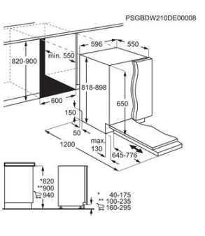 * Розміри для вбудовування (В(хв./макс.)хШхГ), мм: 820/880x600x550