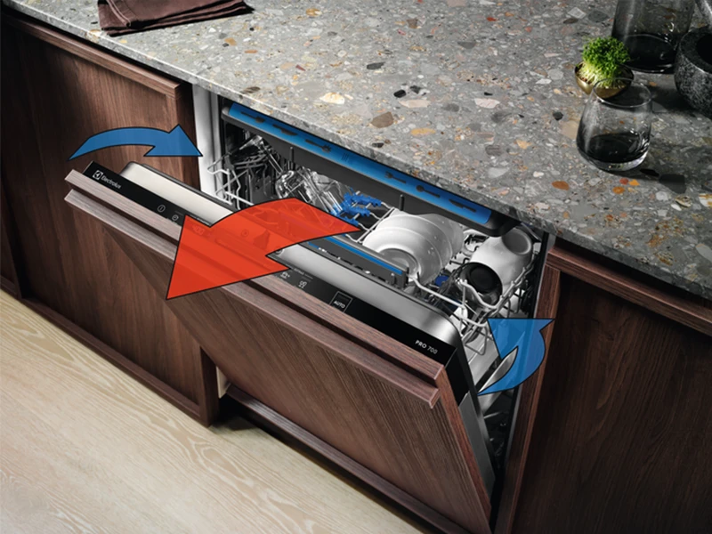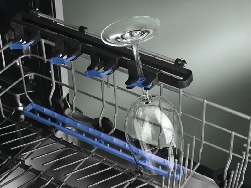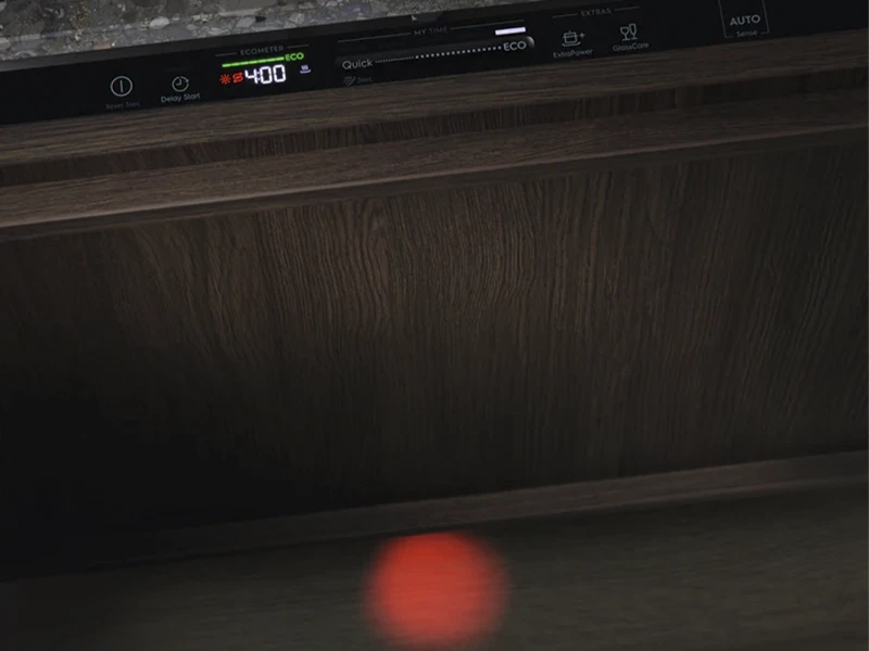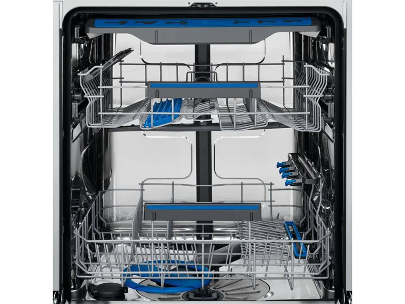 Вбудована посудомийна машина Electrolux EMG 48200 L оснащена кількома технологічними новинками для економії та використання миття. Дверцята AirDry відкриваються після роботи для подушки посуду, розбризкувач подвійного обертання SatelliteClean широко розподіляє воду по всьому об'єму, промиваючи посуд навіть при щільному навантаженні, за допомогою слайдера QuickSelect встановлює час роботи машини. Висоту верхнього кошика можна змінити, коли робота техніки завершена, на підлогу проектується світловий промінь зеленого кольору. Великий вибір програм дозволяє легко відмити посуд із навколишнім середовищем. У машину можна завантажити 14 повних комплектів посуду.