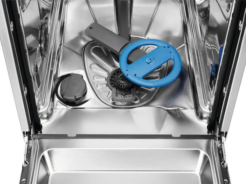 SatelliteClean працює втричі ефективніше, ніж звичайна посудомийна машина, і гарантує бездоганну чистоту посуду. Розпилювач з подвійним обертанням і постійною зміною кута розпилювання ретельно очищає навіть великий посуд.