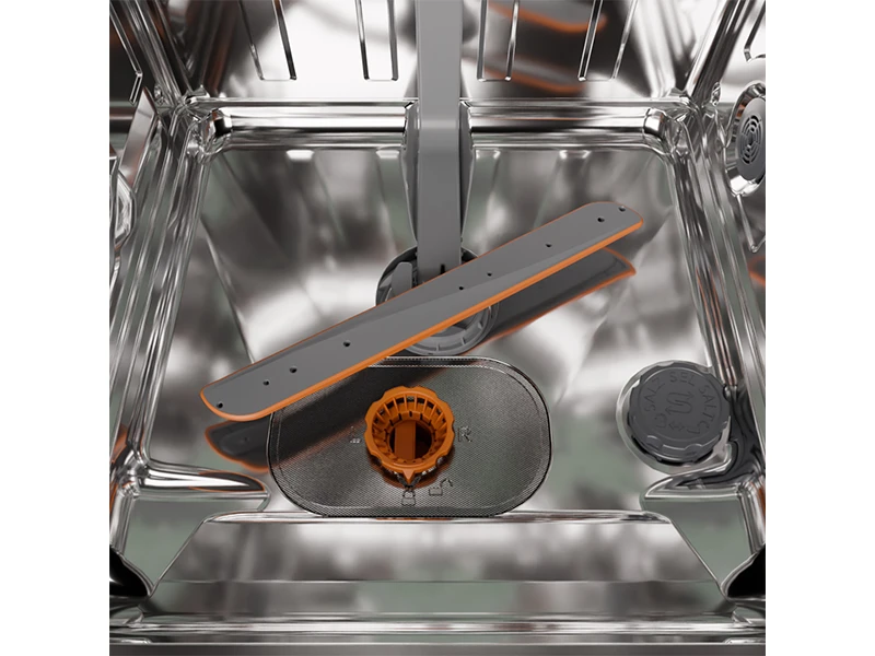 Кошики оснащені виділеними рухомими елементами та налаштованим розташуванням кошика для зручного завантаження. Дійсно проста дворівнева система регулювання кошика дозволяє розповісти навіть найбільші каструлі та тарілки. Решітка для тарілок у нижньому кошику легко складається. Столові прилади можна ідеально розписати на спеціальному підносі, де вони розташовуються окремо для ідеального результату очищення та сушіння. Кожна деталь розроблена для максимально зручного використання.