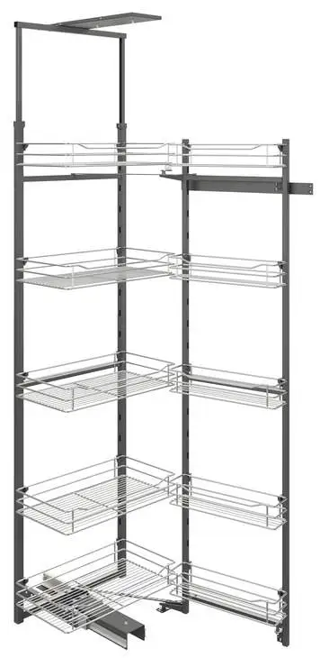 Матеріал: Висувна рама, навісні полиці та підвісні корзини: сталь, основа і полиці: ДСП або сталь