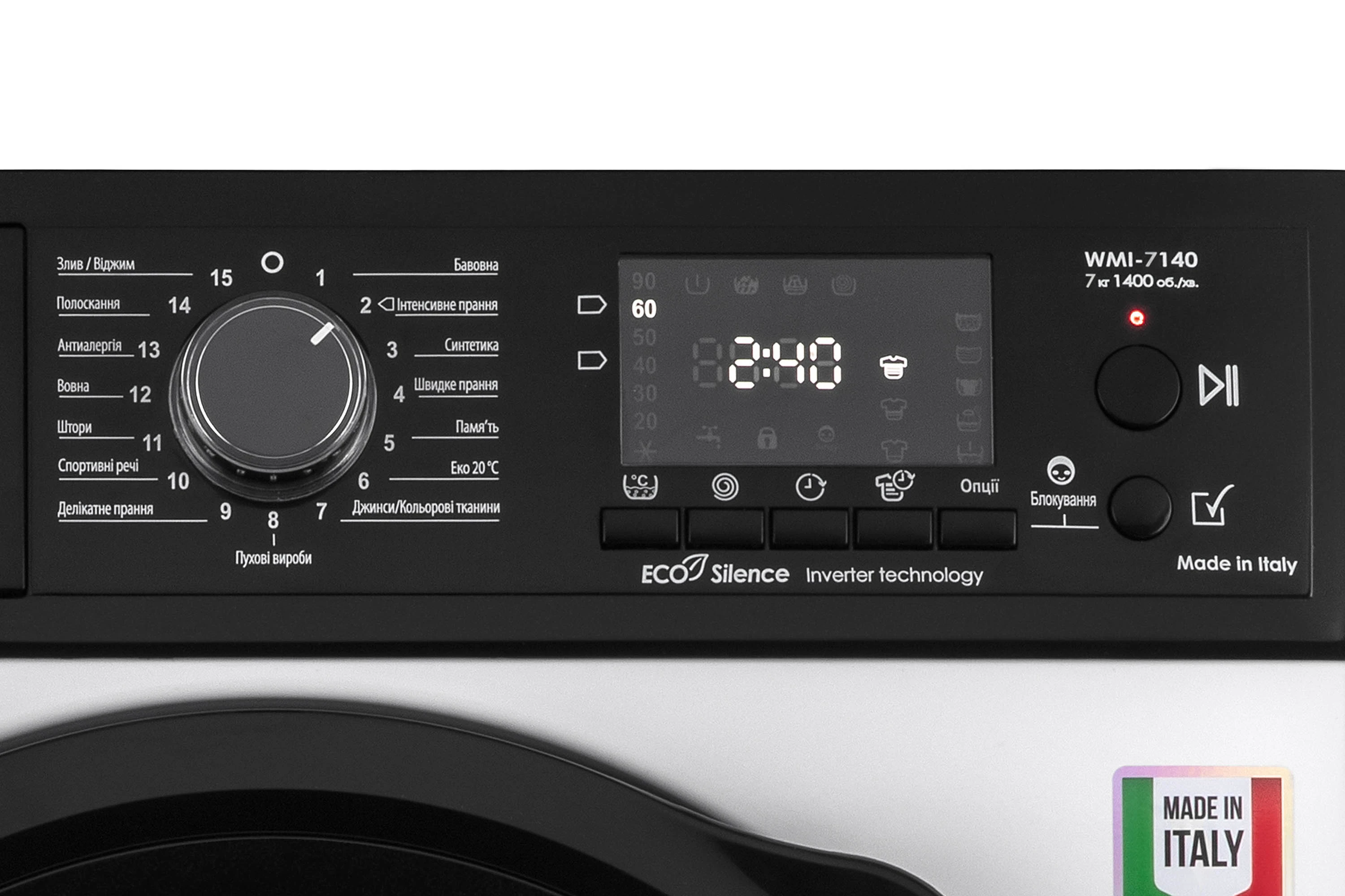 - Программы Бавовна; Вовна; Швидке прання; Антиалергія; Інтенс