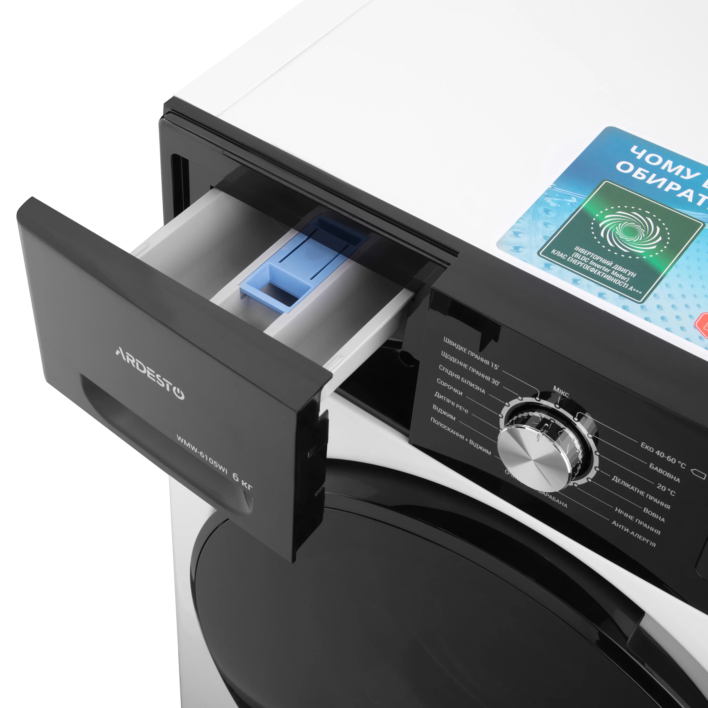 Пральна машина ARDESTO фронтальна Black Mars, 6кг, 1200, А+++, 46.5см, дисплей, інвертор, білий