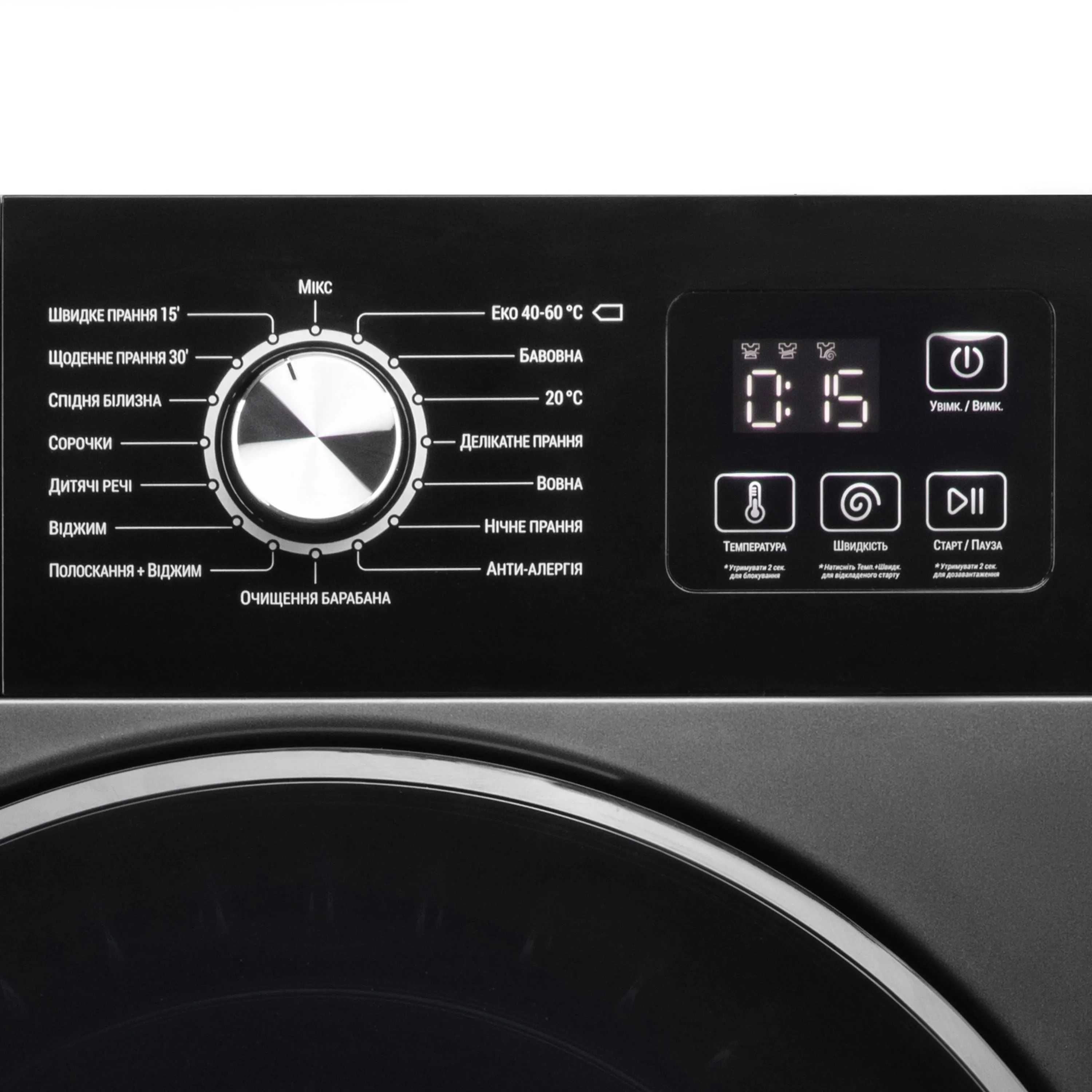 - Программы Бавовна; Вовна; Щоденне прання; Полоскання + Віджи