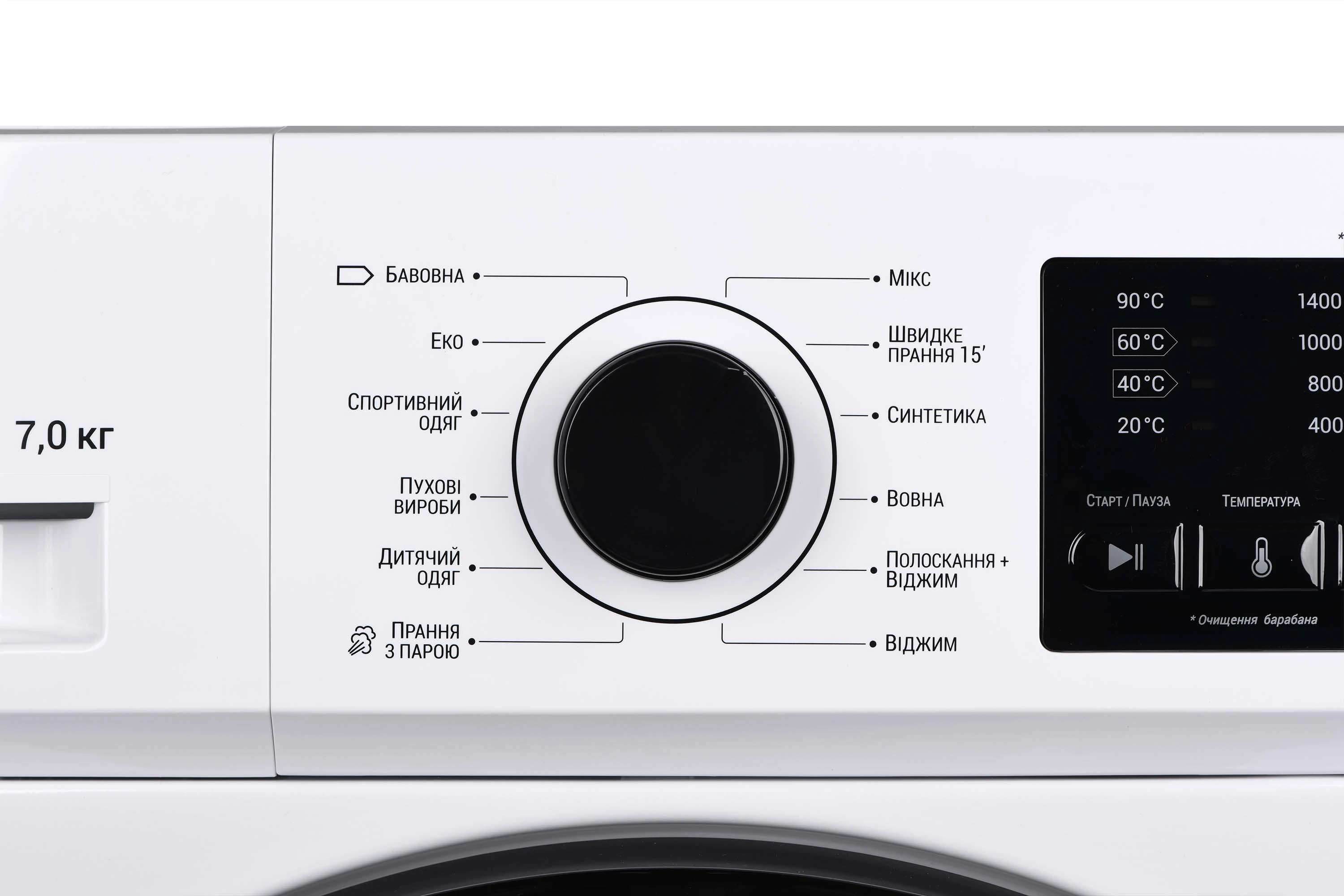 - Программы Бавовна; Делікатна; Вовна; Прання паром; Екоцикл;