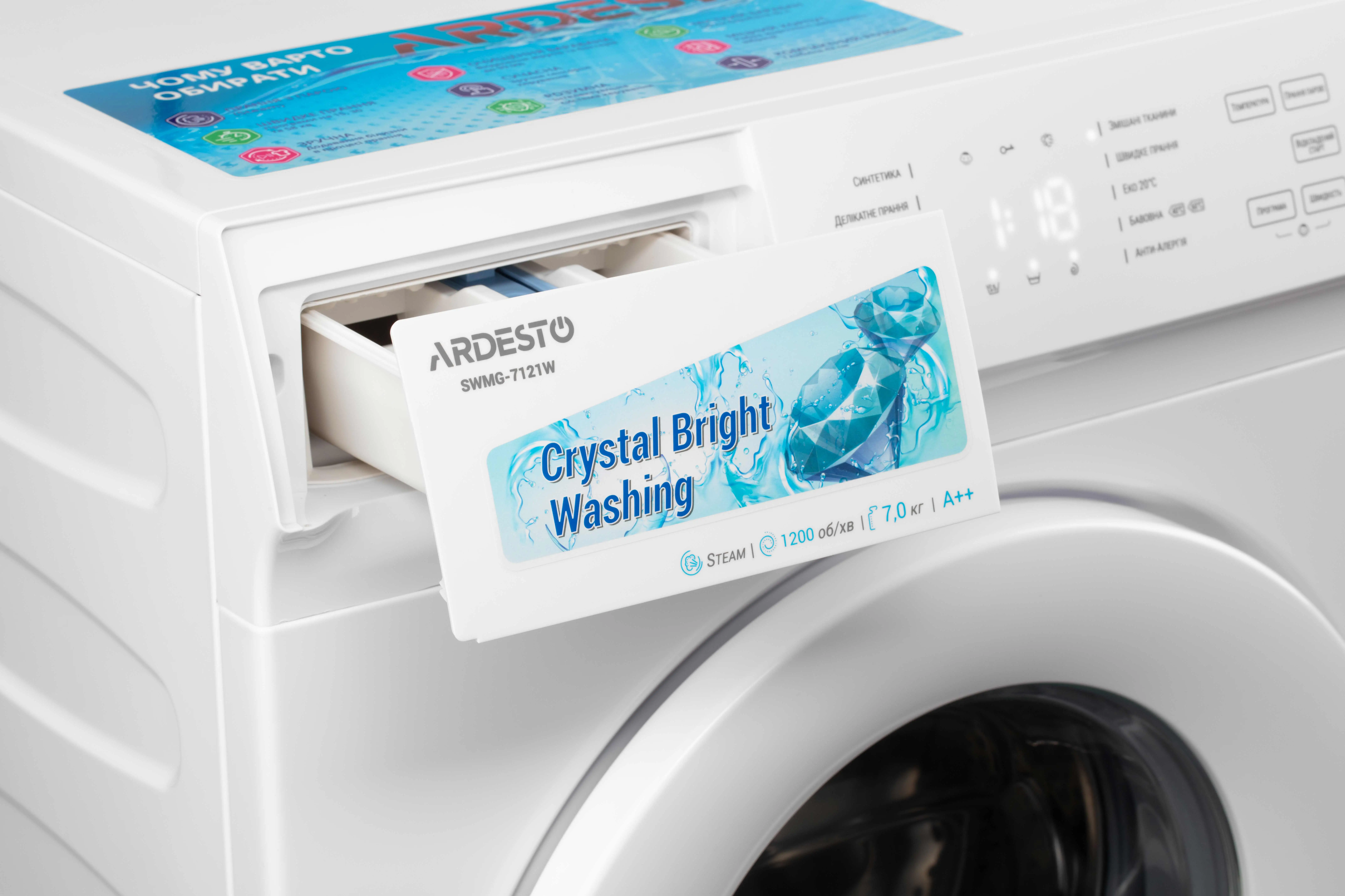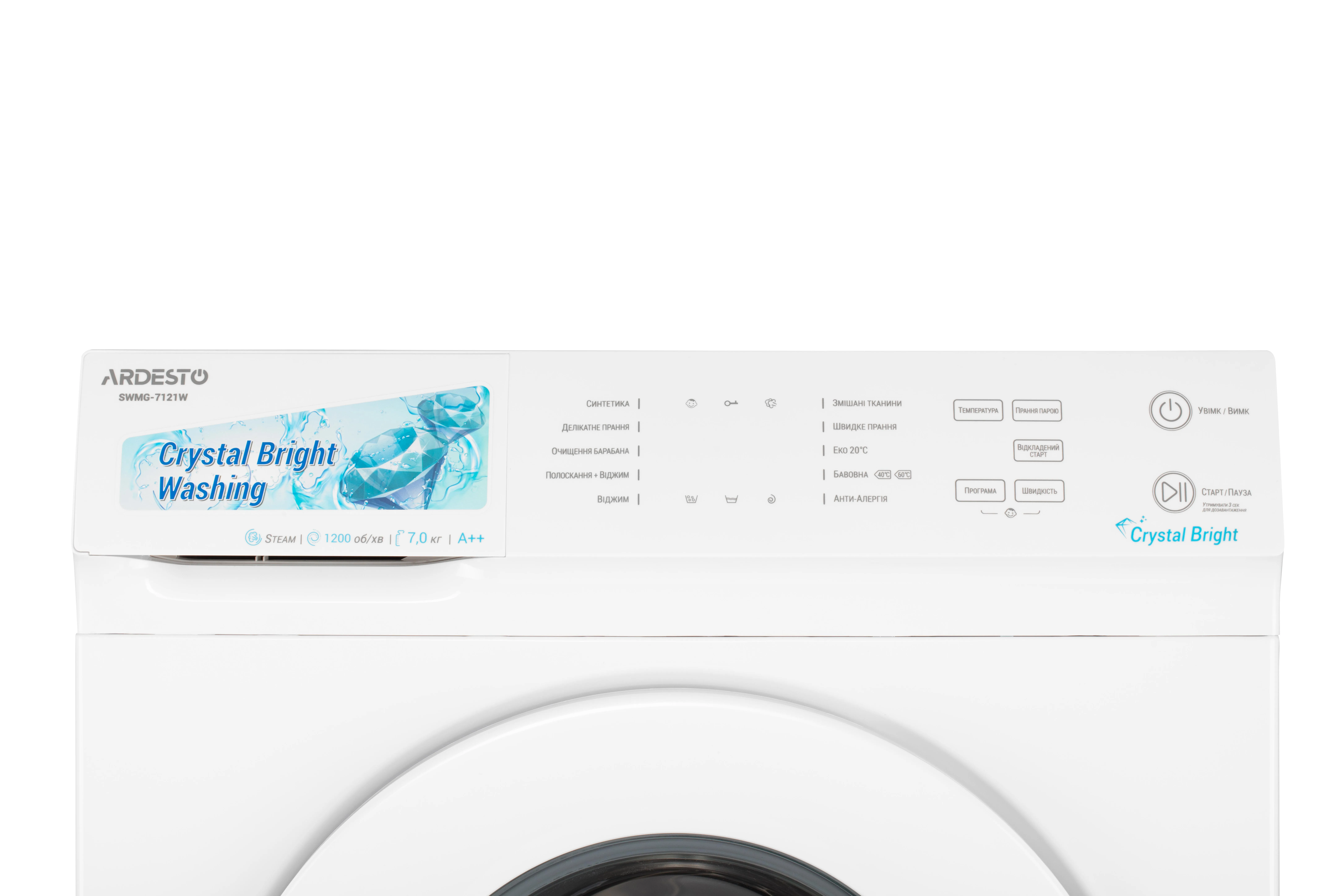Пральна машина ARDESTO фронтальна Crystal Bright, 7кг, 1200, А++, 42см, дисплей, пара, сенсор.управл