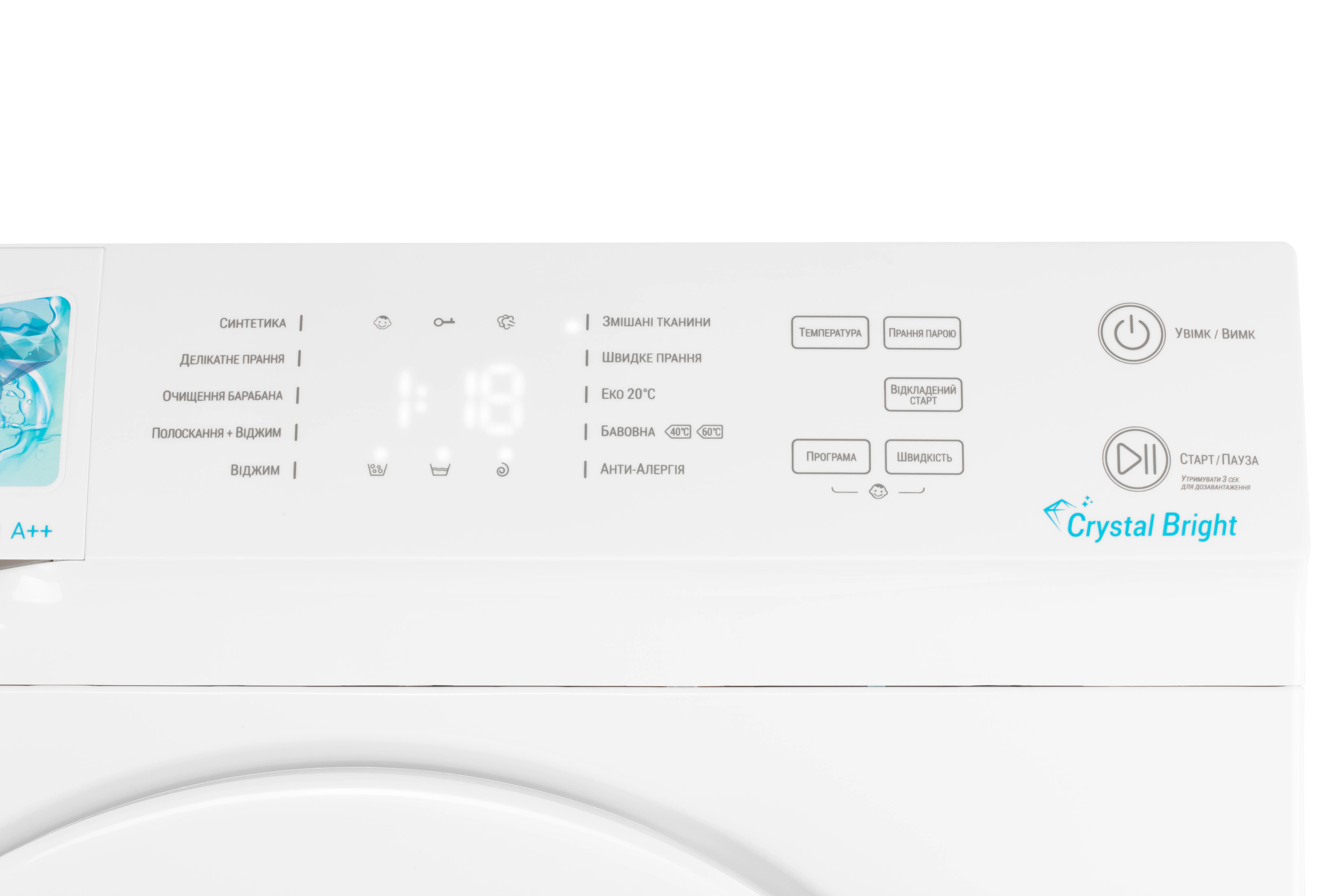 - Дополнительно захист від дітей; вибір швидкості віджиму; вибір т