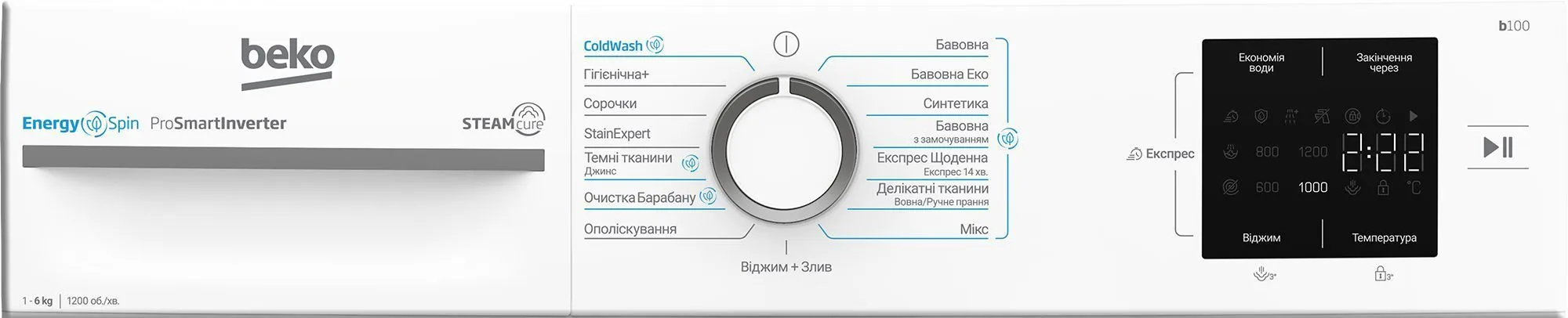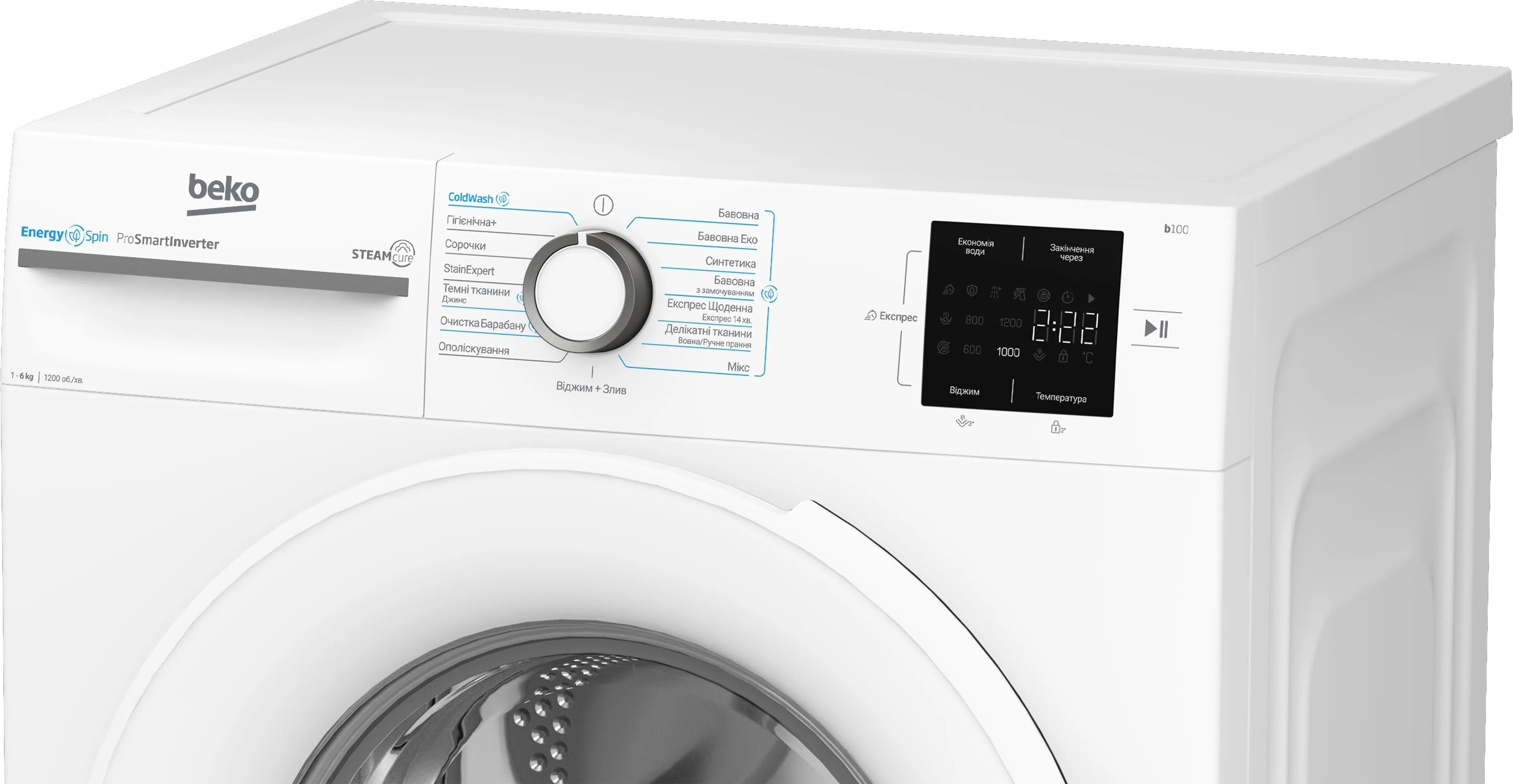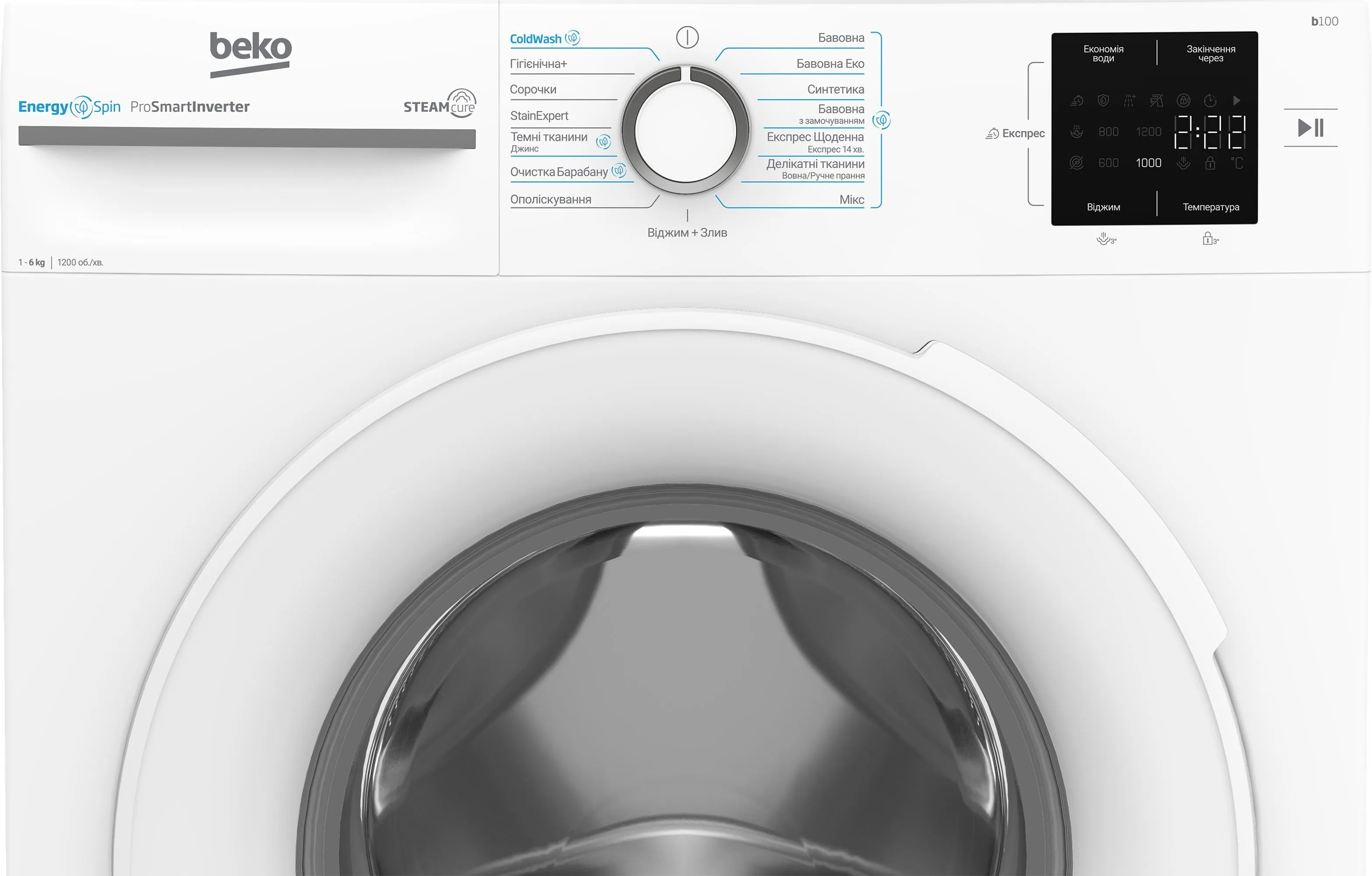 Пральна машина Beko фронтальна, 6кг, 1200, A+++, 45см, дисплей, інвертор, пара, білий