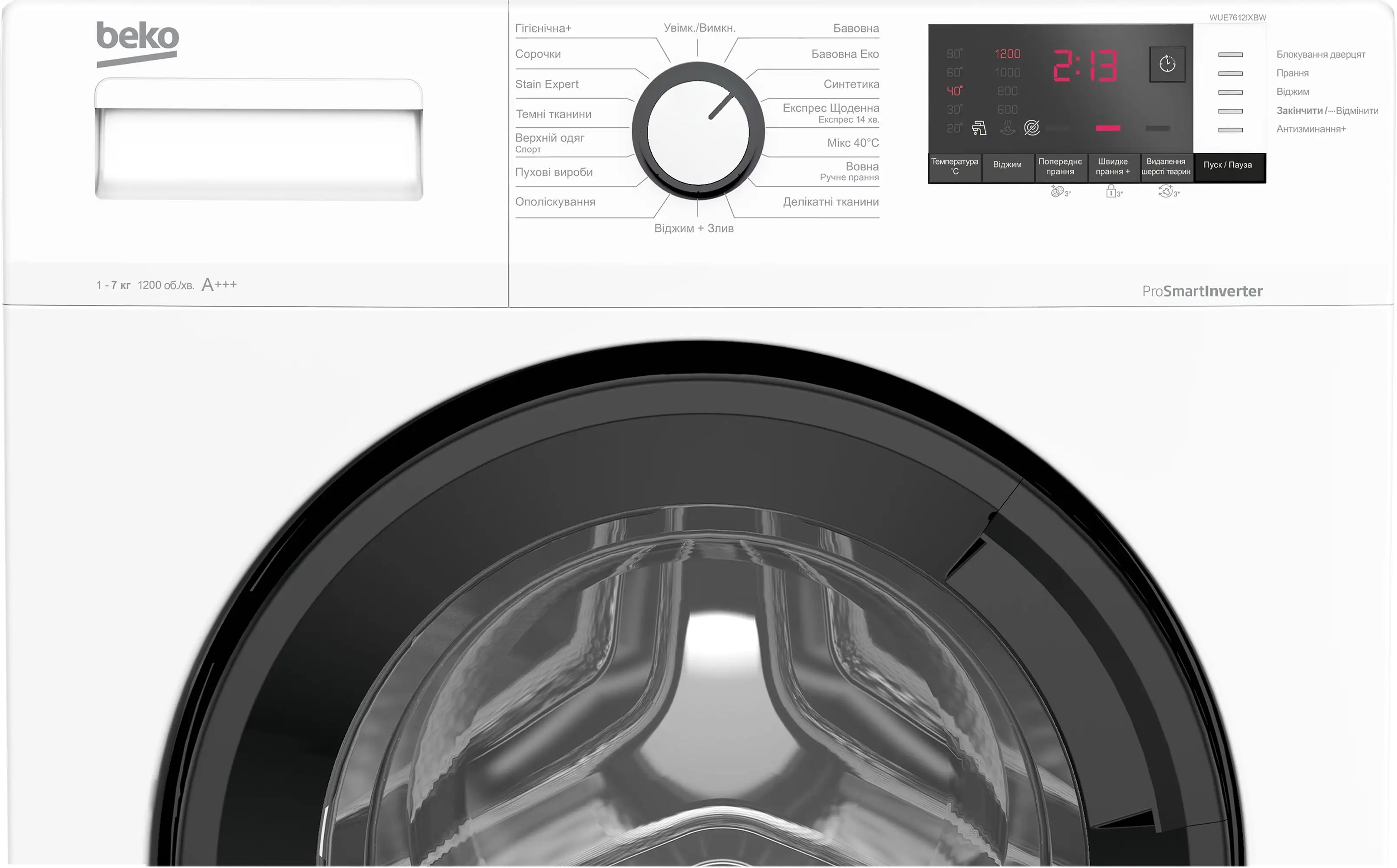 Пральна машина Beko фронтальна, 7кг, 1200, A+++, 45см, дисплей, SMART, інвертор, білий
