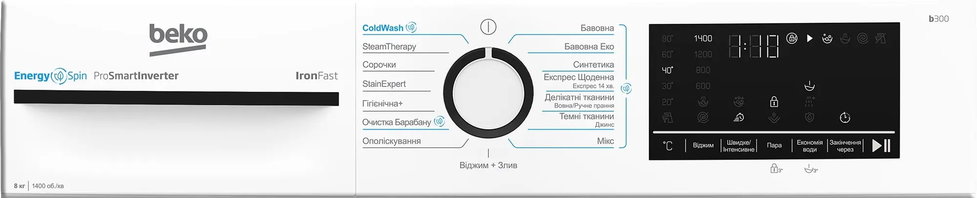 - Программы Бавовна; Бавовна ЕКО; Синтетика; ополіскування; Пр