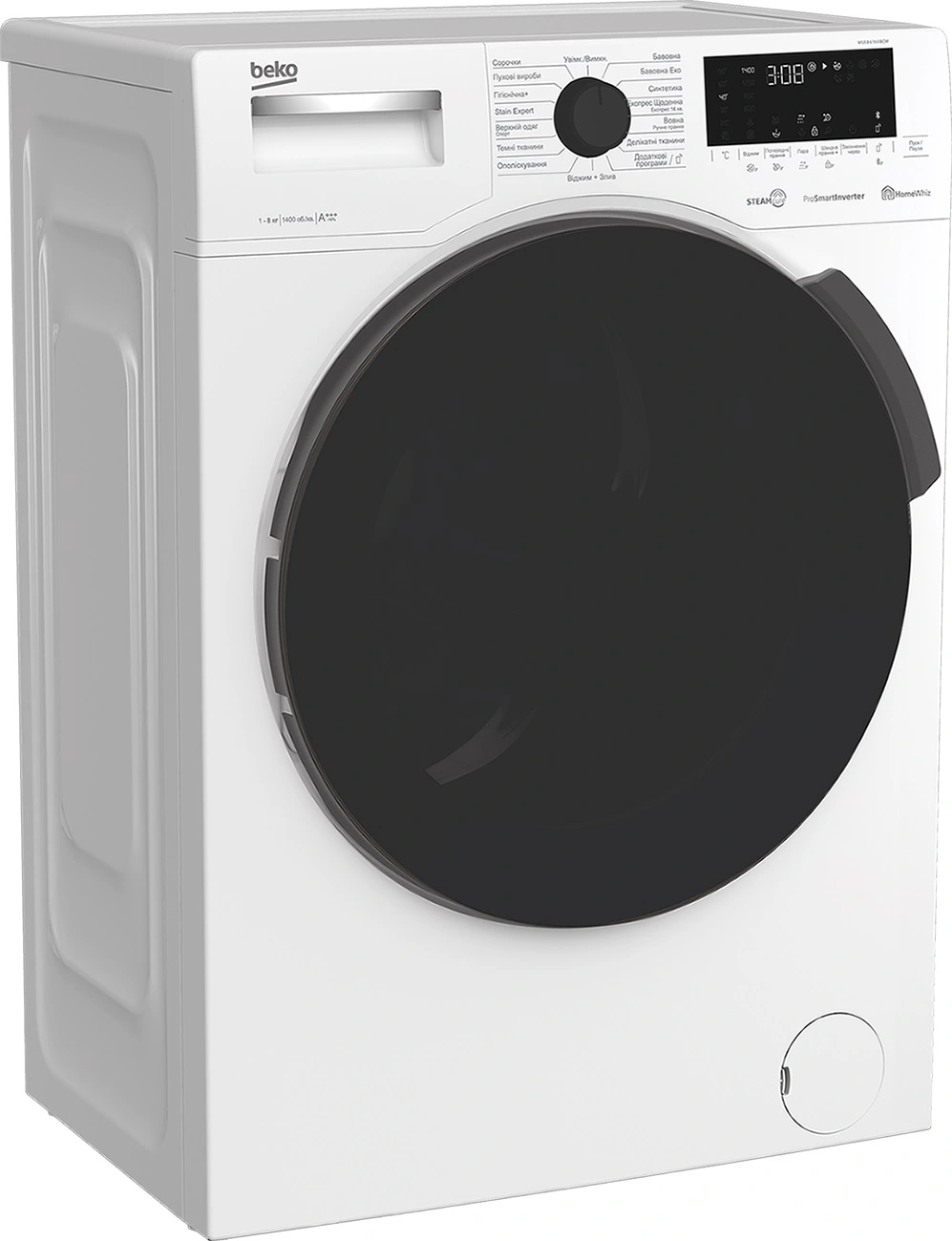 Пральна машина Beko фронтальна, 8кг, 1400, A+++, 55см, дисплей, пар, інвертор, білий