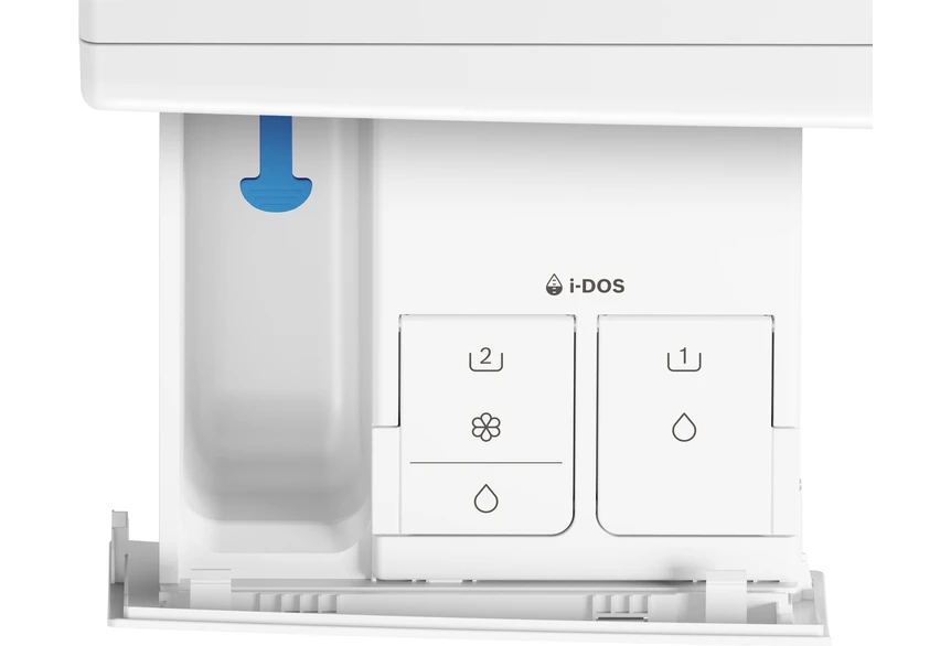 Із системою автодозування i-DOS міркувати щодо кількості засобу не доведеться. Просто заповніть відсіки для мийного та пом'якшувального засобу, а сенсори i-DOS самі вимірюватимуть їхню кількість для кожного прання. Система також попереджає зайве полоскання, економлячи таким чином воду.