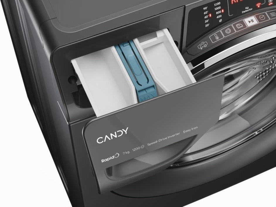Пральна машина Candy фронтальна, 7кг, 1200, A+++, 45см, дисплей, пара, інвертор, cріблястий