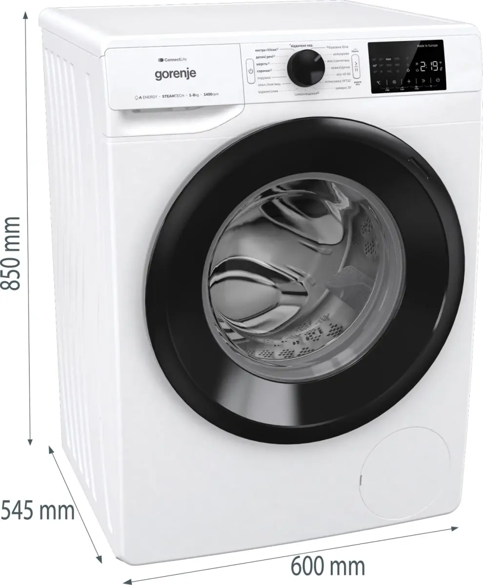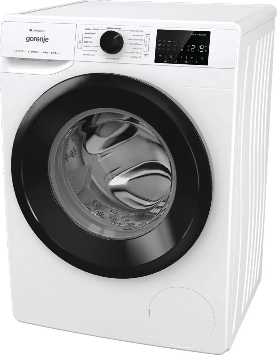 Пральна машина Gorenje фронтальна, 8кг, 1400, A+++, 55см, дисплей, інвертор, пара, Wi-Fi, білий
