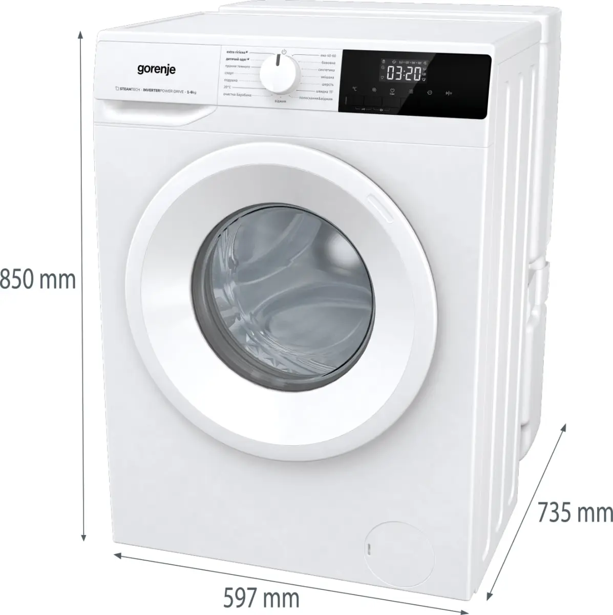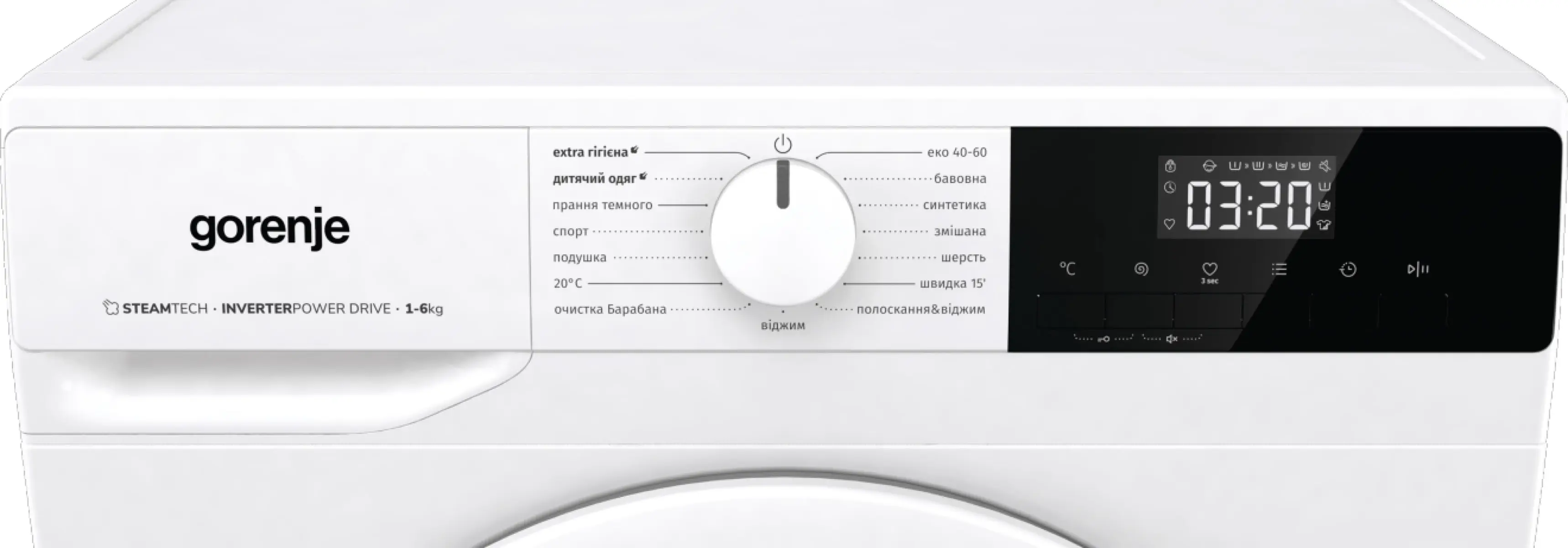 Пральна машина Gorenje фронтальна, з баком, 6кг, 1000, A+, 60см, дисплей, пар, інвертор, білий