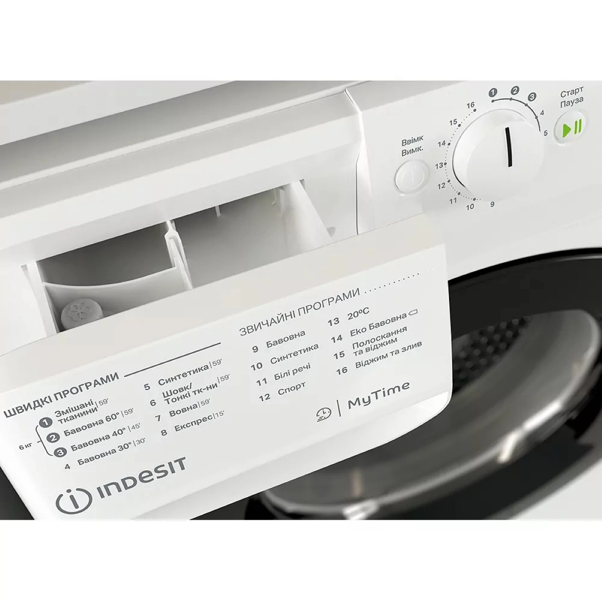 Пральна машина Indesit фронтальна, 6кг, 1200, A+++, 43см, дисплей, інвертор, люк чорний, білий
