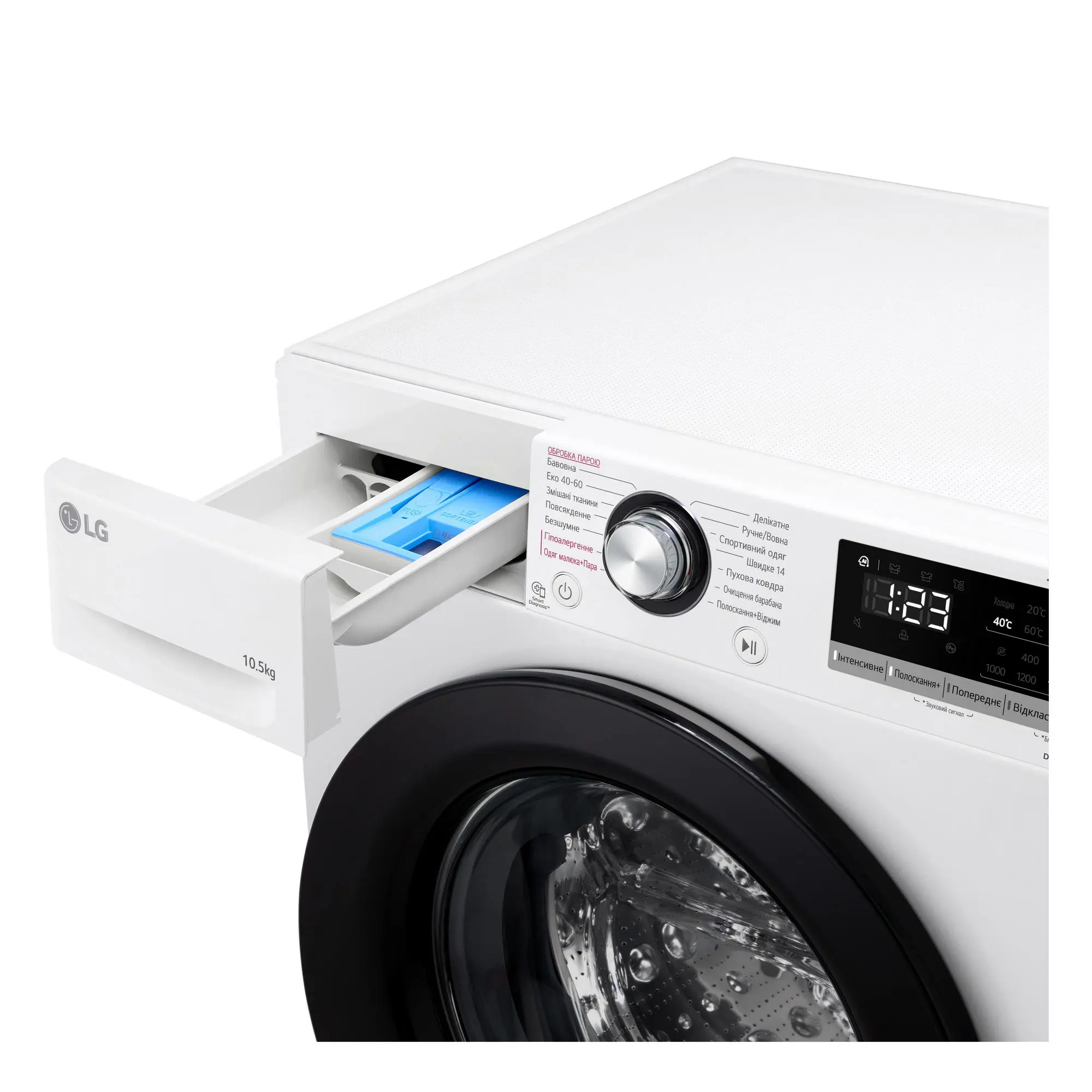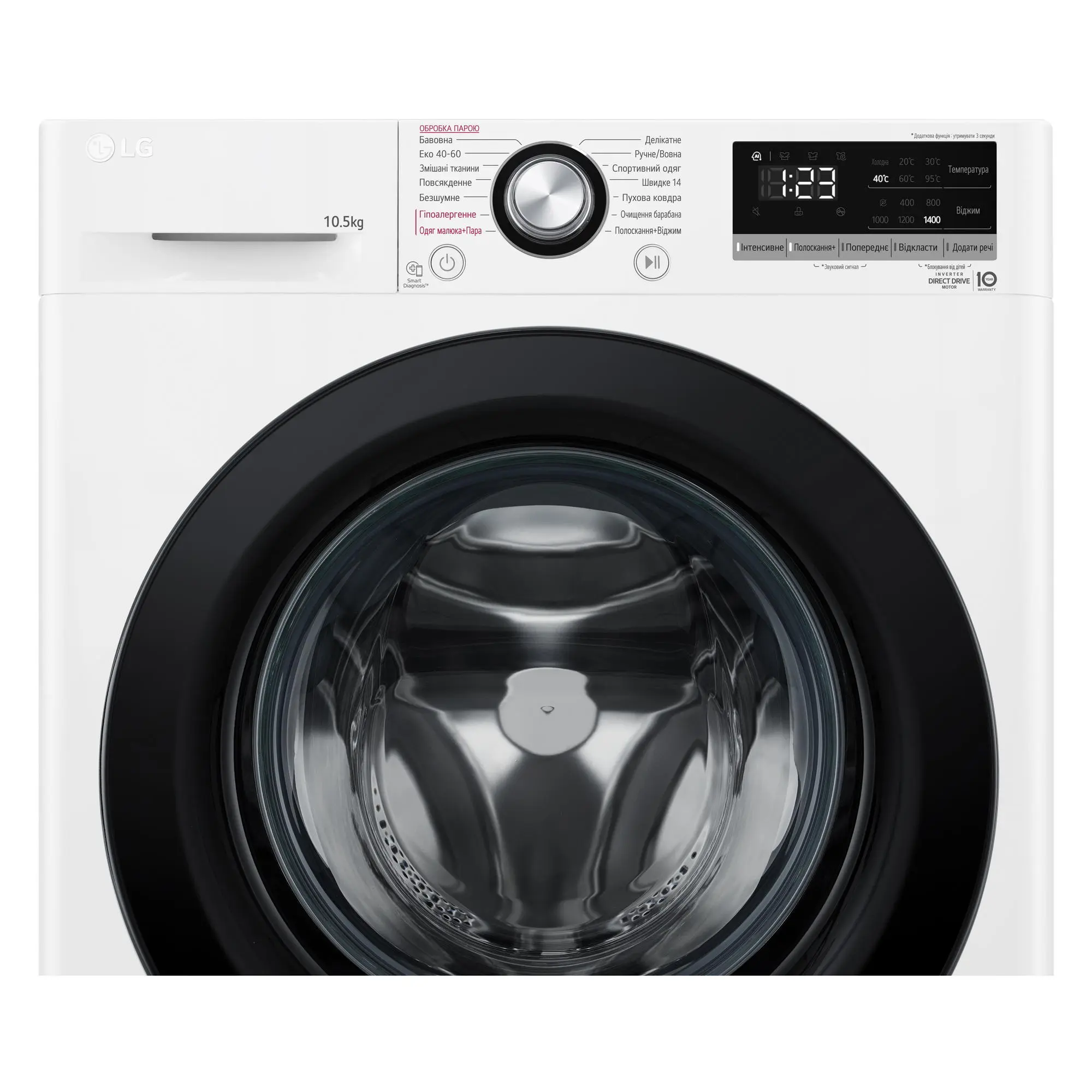 Пральна машина LG фронтальна, 10.5кг, 1400, A+++, 57см, дисплей, пара, інвертор, білий