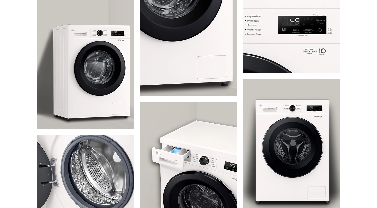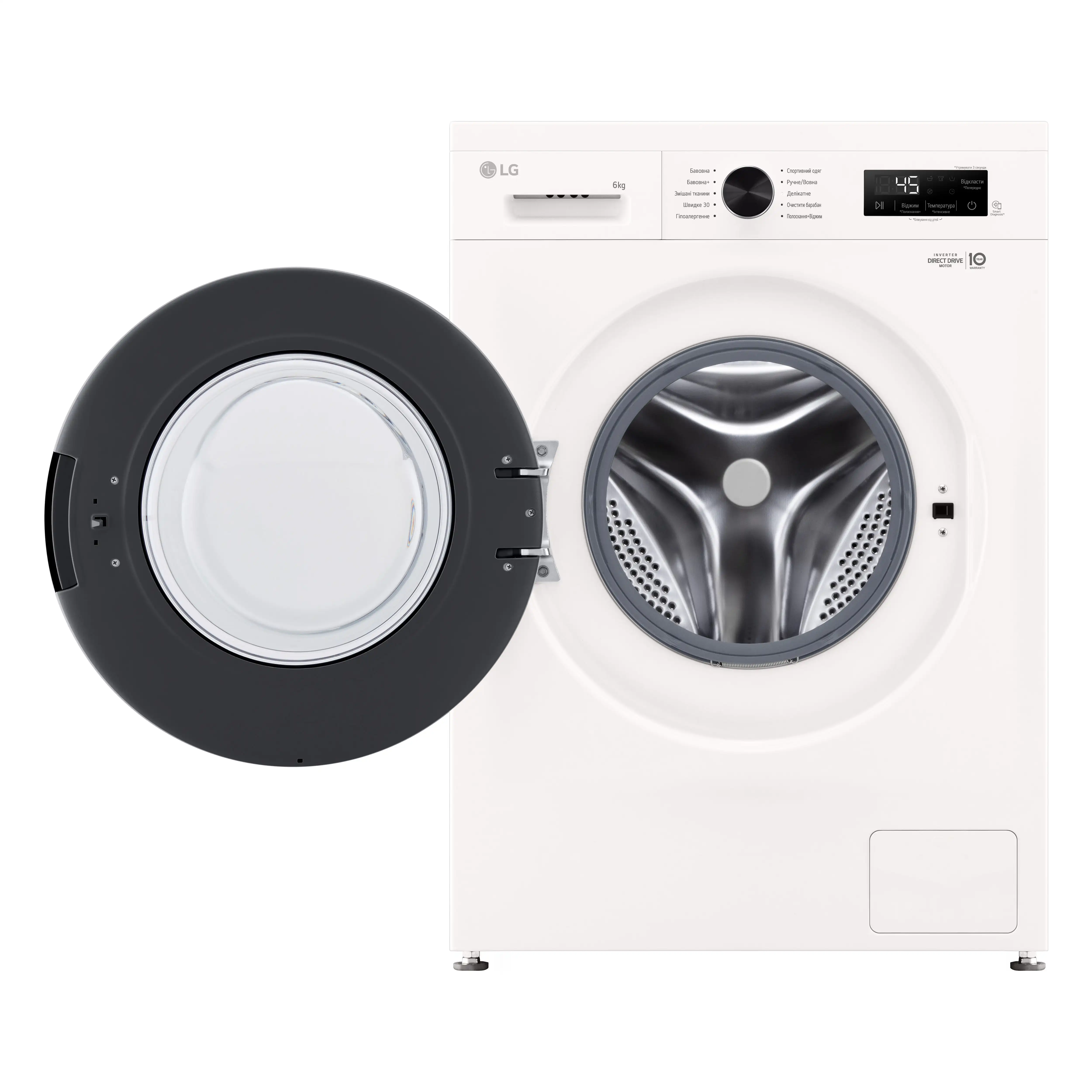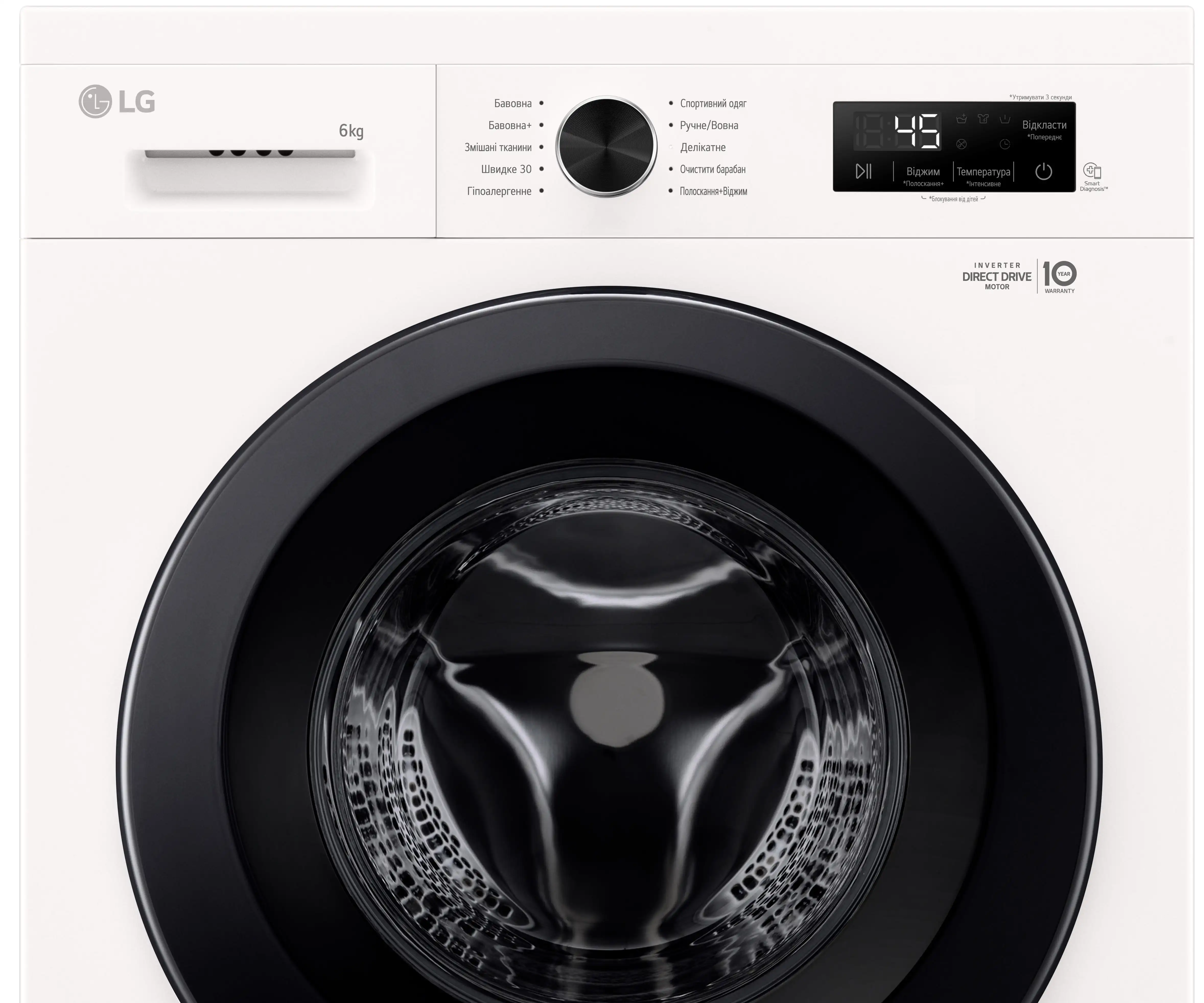 Пральна машина LG фронтальна, 6кг, 1200, A+++, 44см, дисплей, пара, інвертор, білий