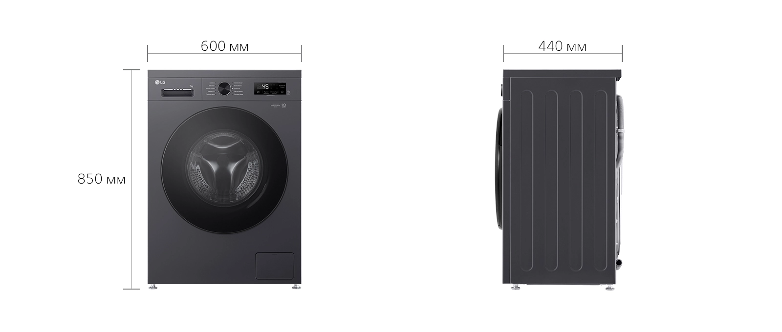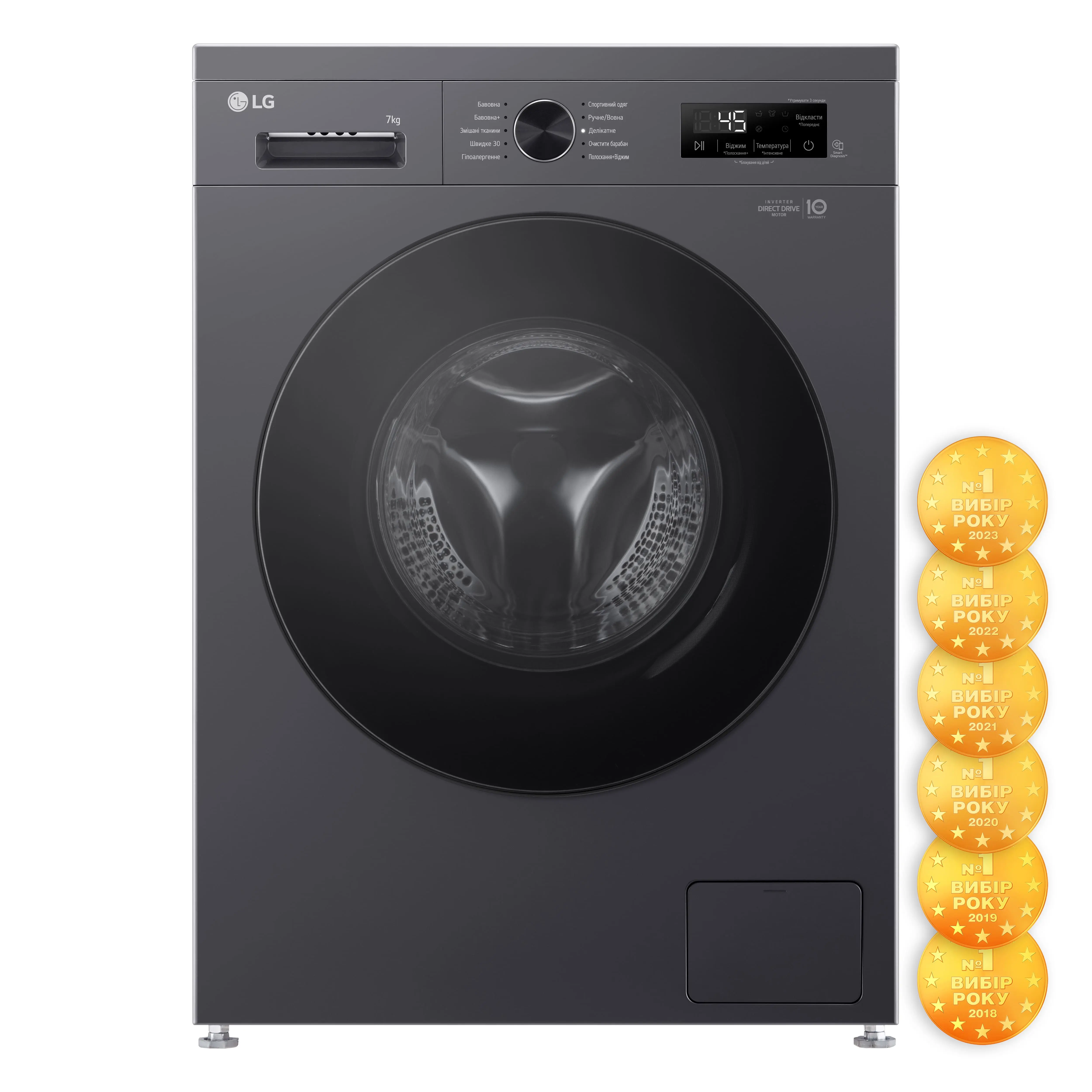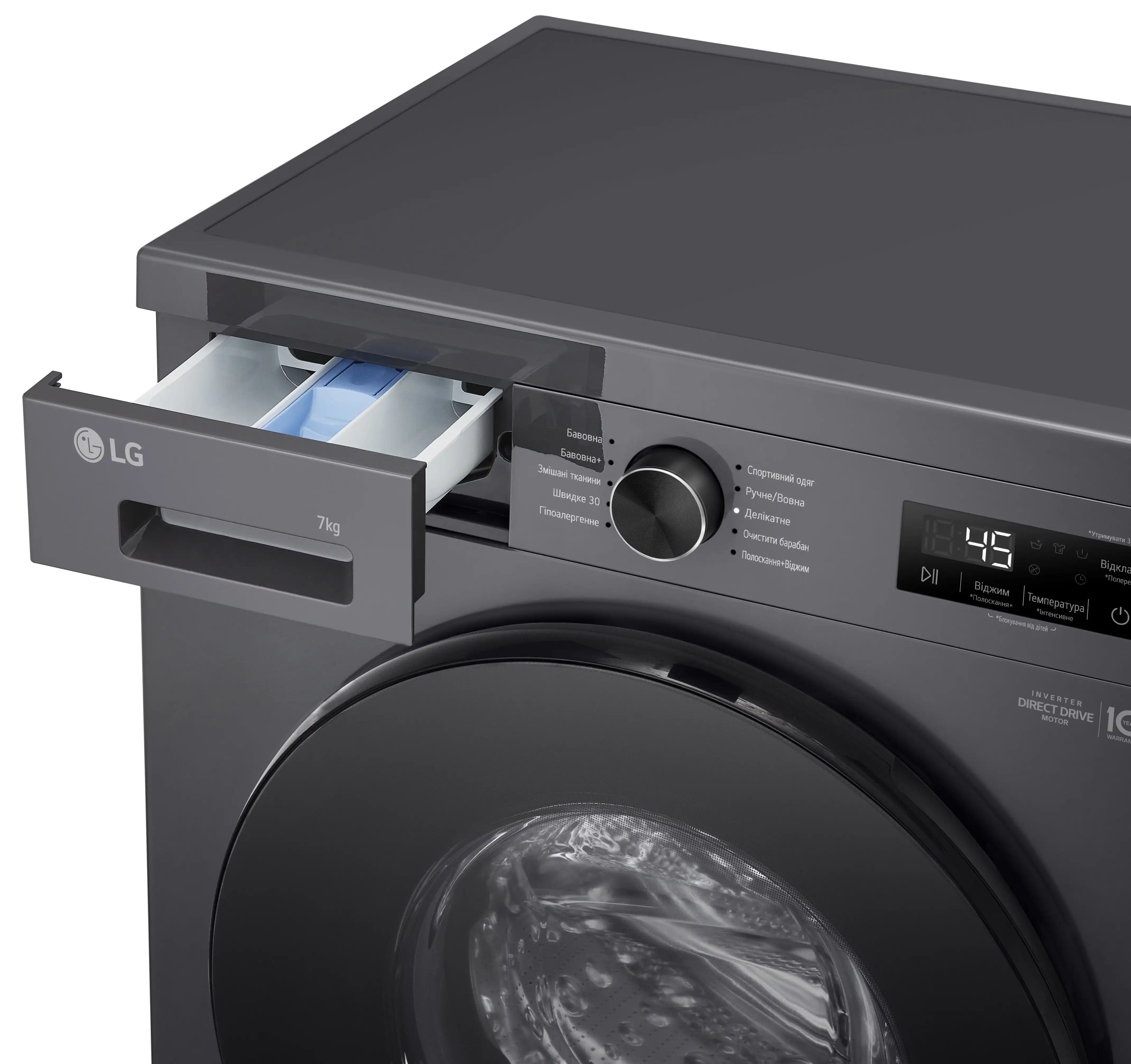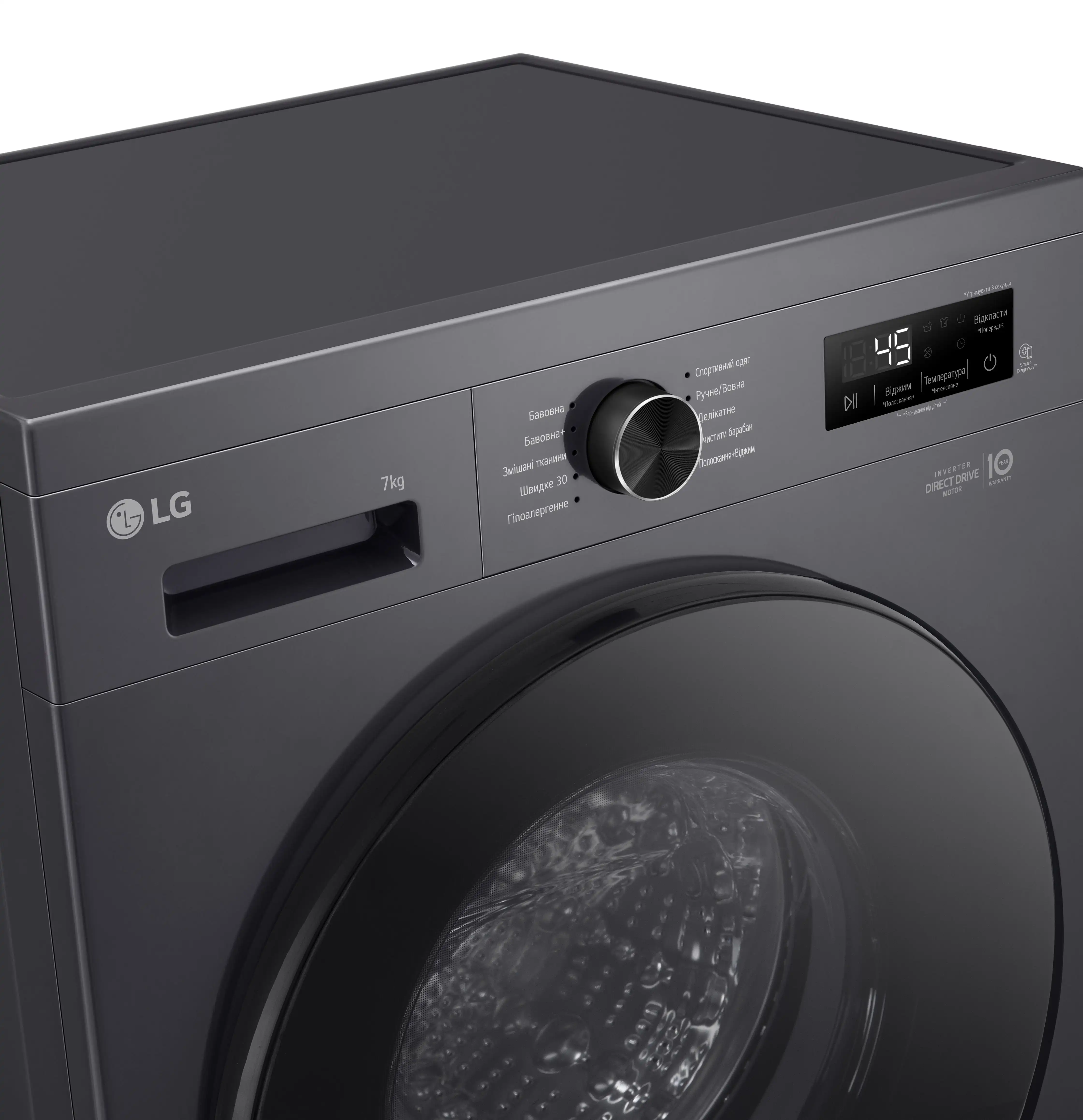Пральна машина LG фронтальна, 7кг, 1200, A+++, 44см, дисплей, пара, інвертор, чорний