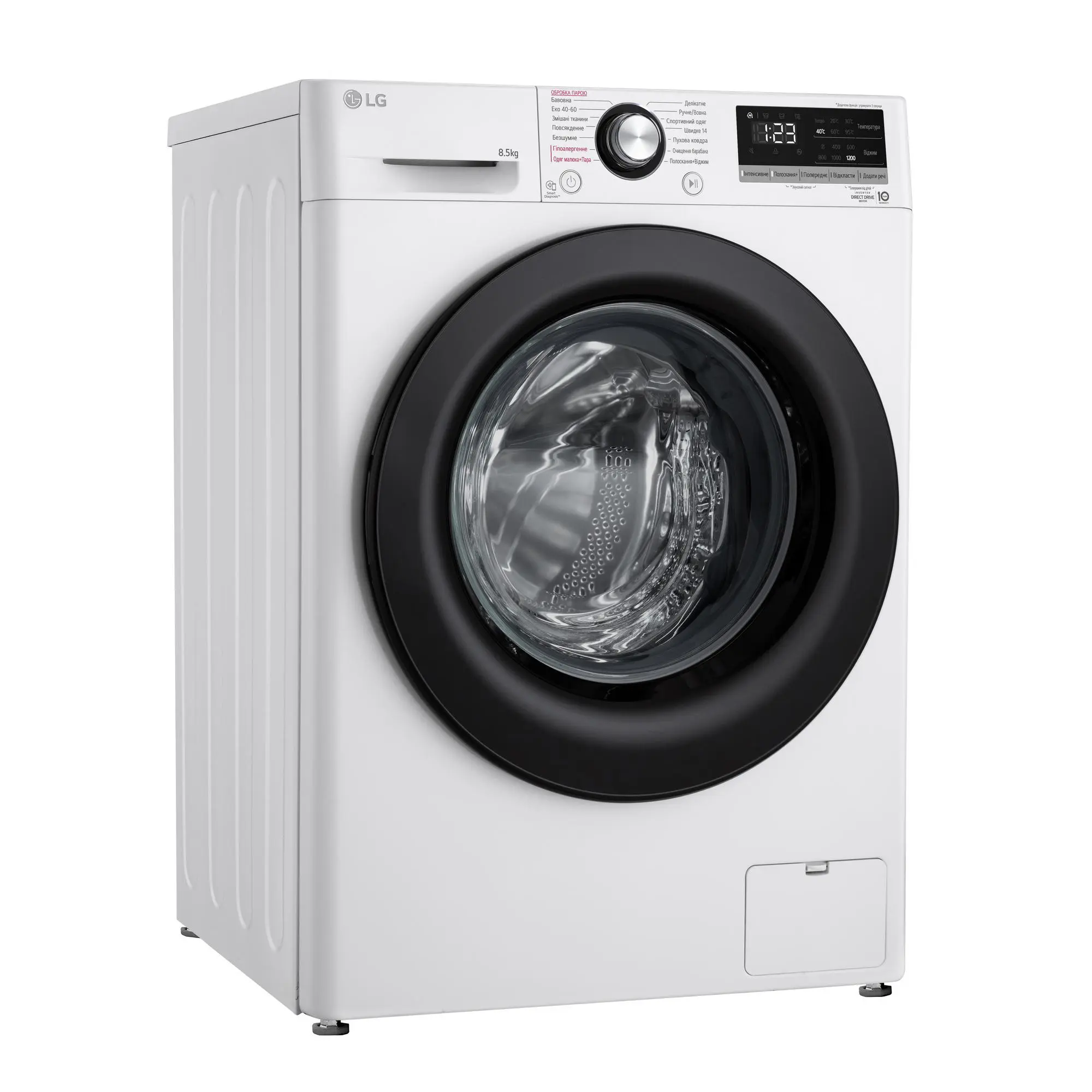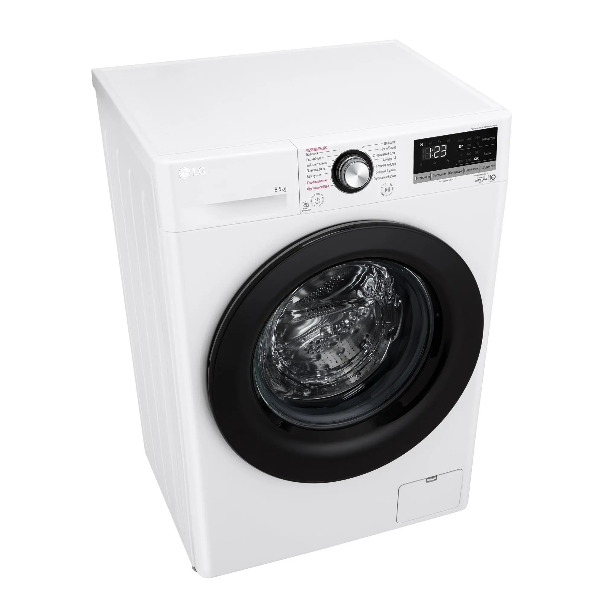 Пральна машина LG фронтальна, 8.5кг, 1200, A+++, 48см, дисплей, пара, інвертор, білий