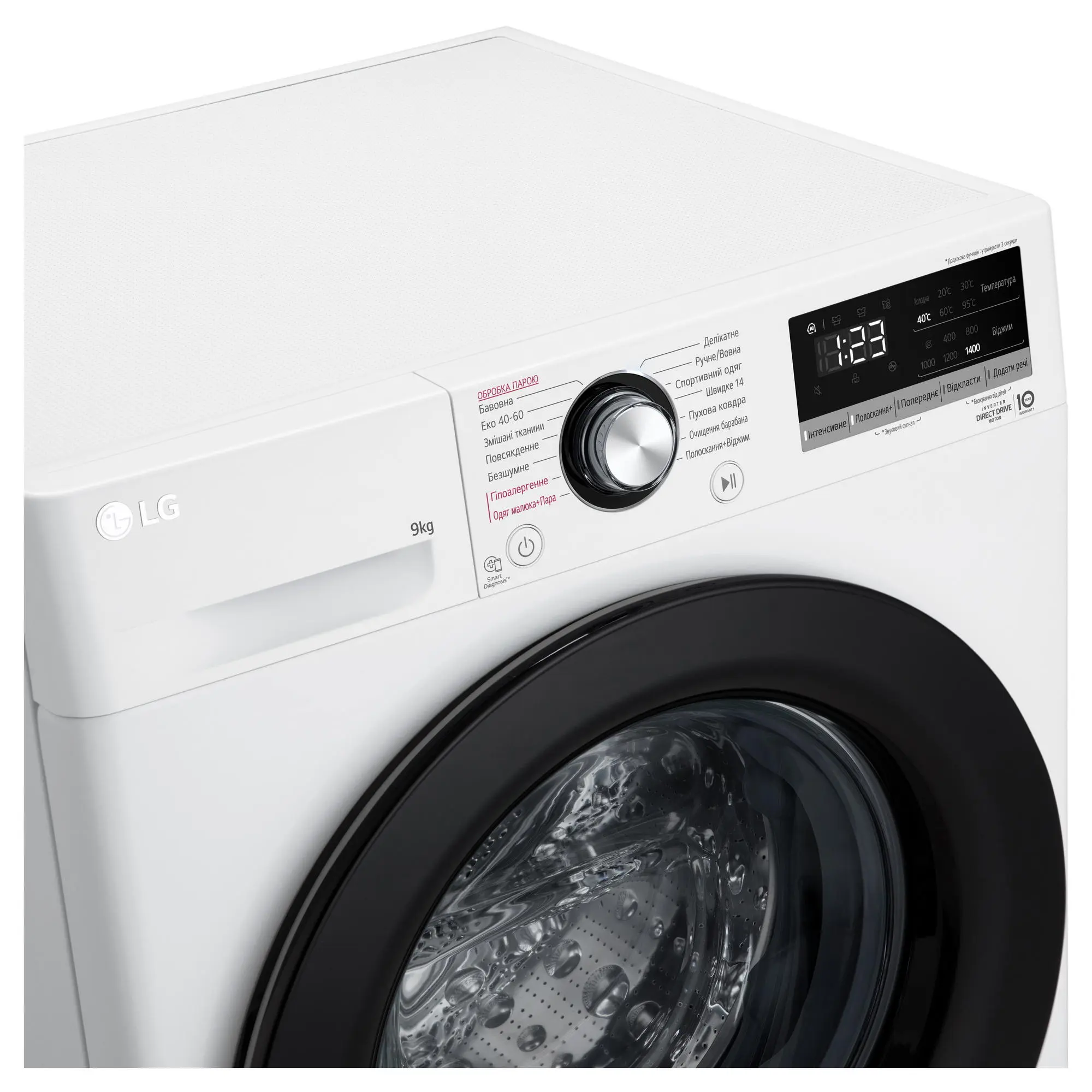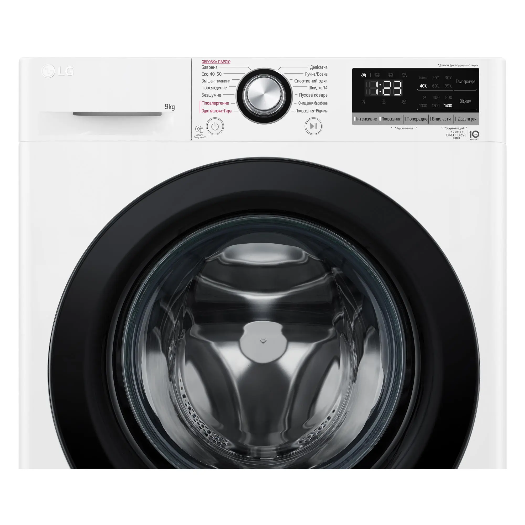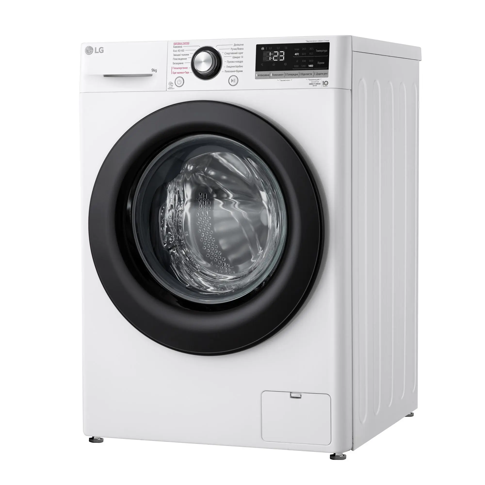 Пральна машина LG фронтальна, 9кг, 1400, A+++, 57см, дисплей, пара, інвертор, білий