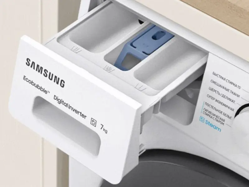 Завдяки спеціальної конструкції лотка та особливому алгоритму подачі води у лоток пральний засіб вимивається повністю, без залишку. Таким чином, витрата стирального засобу є максимально ефективною, а лоток залишається гігієнічно чистим.