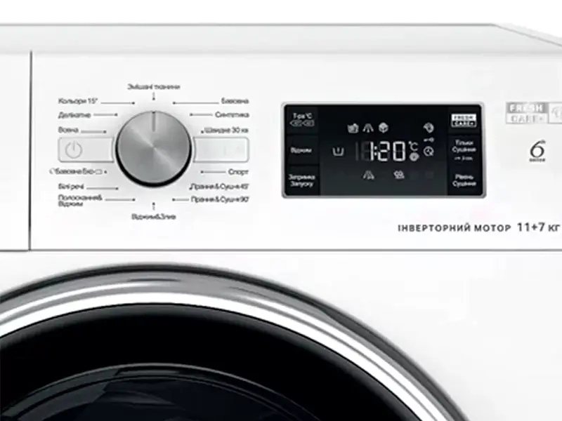 ВНУТРІШНІЙ ПРОСТІР РОЗРАХОВАНИЙ НА 11 КГ БІЛИЗНИ ДЛЯ ПРАННЯ ТА 7 КГ ДЛЯ СУШІННЯ